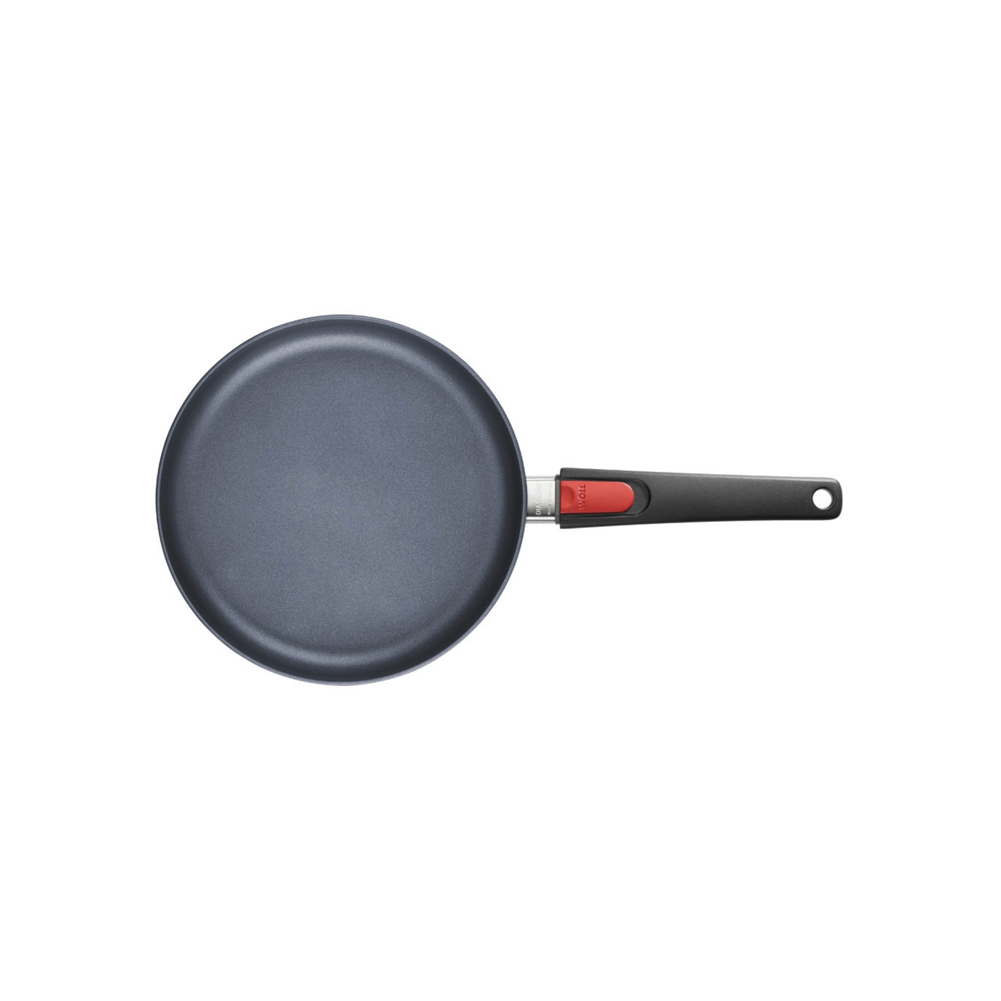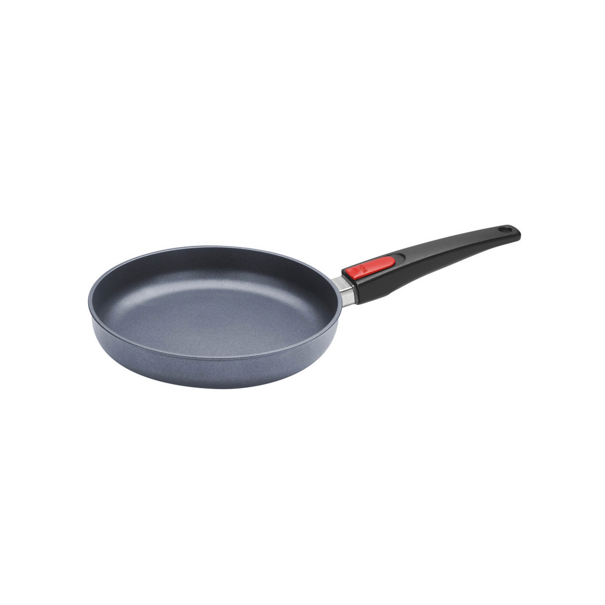 ?Diamond Lite low frying pan with removable handle (diameter 24 cm) made of hand-cast aluminum with 5-layer diamond non-stick coating. Perfect for frying, sautéing and baking a variety of dishes, this pan is made with high-quality materials for exceptional cooking results. Its non-stick coating ensures easy food removal and effortless cleaning, making it a valuable addition to your kitchen. Made by Woll.