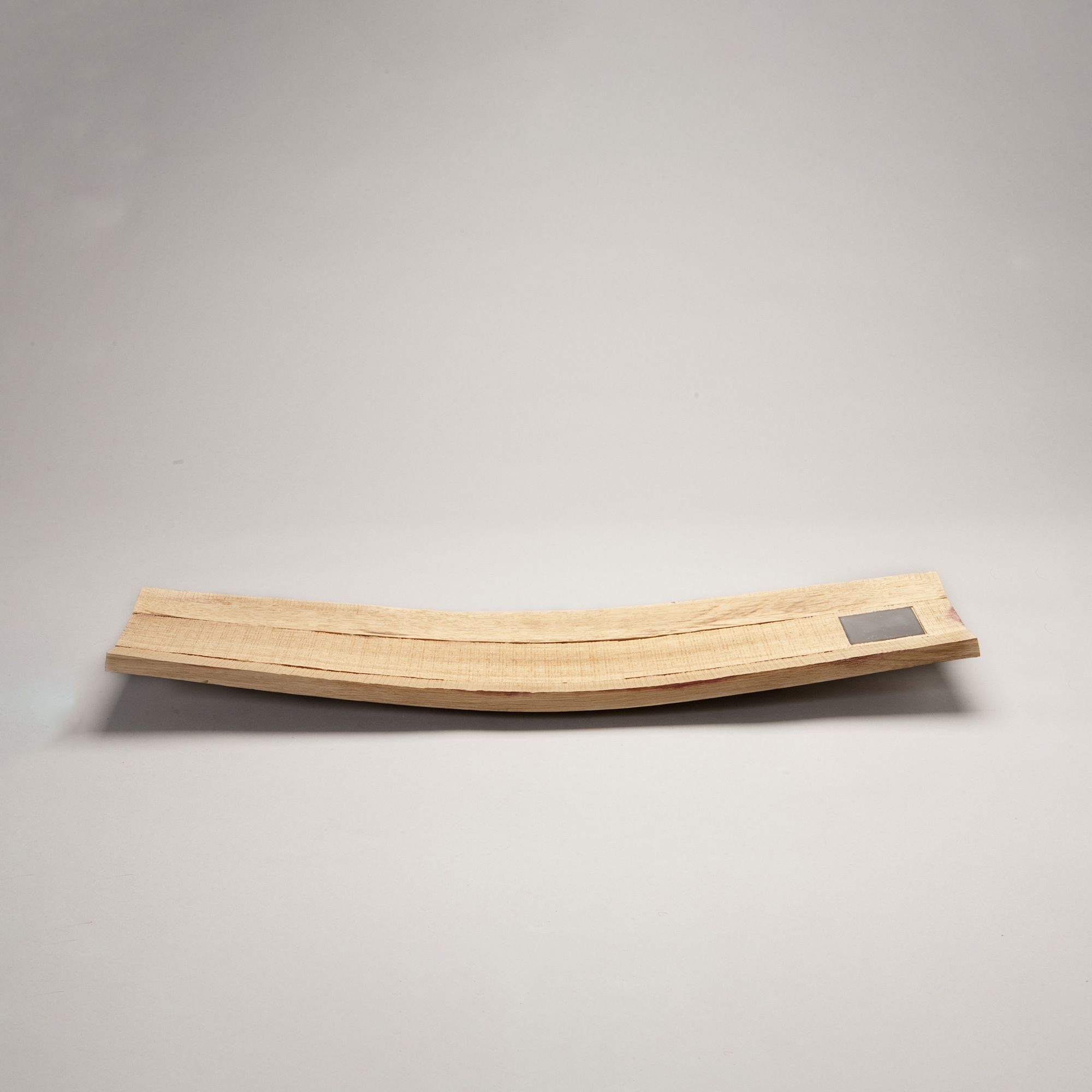 The Barrique trays are part of the GLOCAL collection by knIndustrie. They are made from parts of exhausted barriques. These are oak wood barrels with a capacity of 250 liters used for fermenting or aging wine. Over the years, the barrique imparts vanillin, spicy, resinous, and smoky notes to the wine within. And the wine gives the barrel various nuances that make the trays unique pieces.