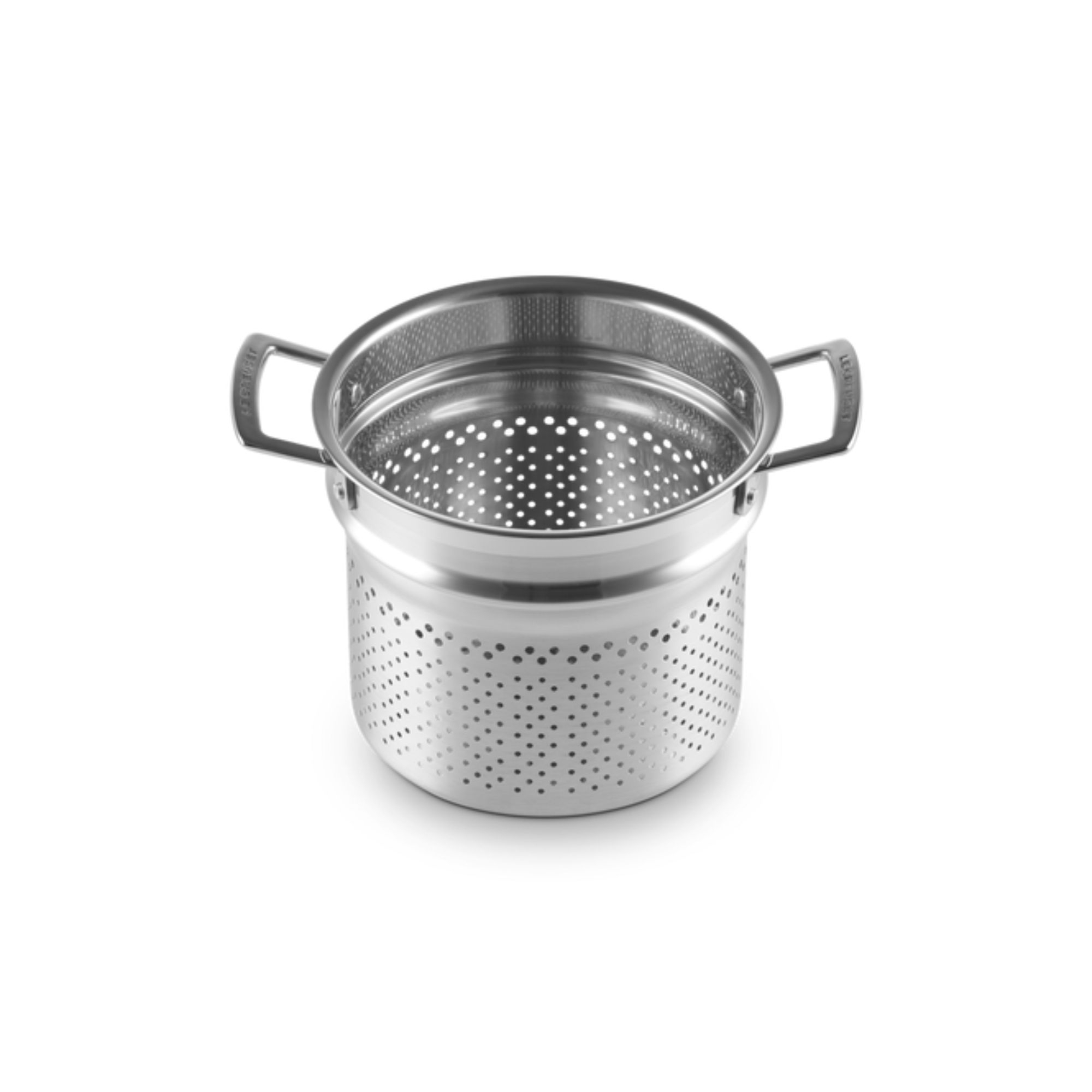 Classic high saucepan with lid and colander made of 18/10 stainless steel. Designed to be versatile and functional, the Classic casserole is ideal for pasta lovers. Thanks to the multi-layer structure, it heats up quickly and maintains uniform heat distribution, ensuring uniform cooking and gourmet results. The quality of the stainless steel ensures fast and even heating, ensuring delicious results. With the lid and colander included, it makes every step easier, and is perfect on any heat source. Elegance and functionality come together in this kitchen must-have. Made by Le Creuset.