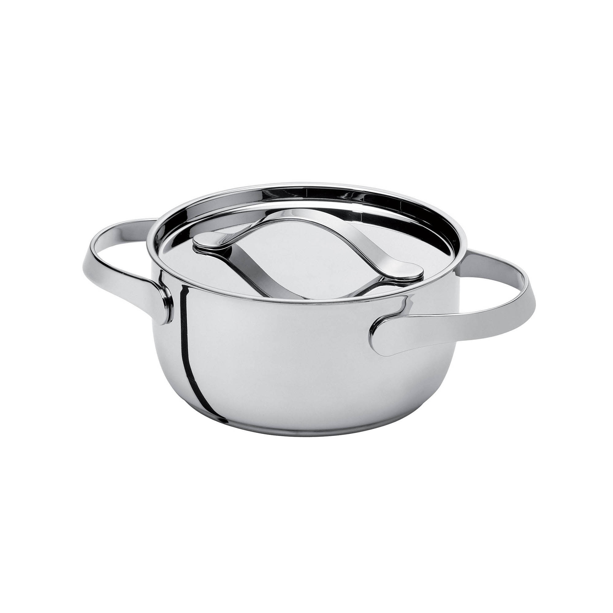The Al Dente saucepan, with a diameter of 24 cm, is crafted by Serafino Zani using high-thickness stainless steel, a material appreciated for its corrosion resistance and durability. Polished to a mirror finish on the outside and satin-finished on the inside, this saucepan promises unbeatable ease of cleaning and maintenance, offering an excellent example of how design and functionality can merge into a single object. Contemporary and stylish, the Al Dente saucepan is perfect for induction and traditional cooktops, facilitating even cooking while preserving the food's flavor and nutritional properties. Additionally, the handles, also made of stainless steel, are designed to ensure a comfortable and secure grip, reducing the risk of slipping; the lid is a crucial element: it has been designed to help maintain the temperature and humidity inside the saucepan, ensuring perfect and tasty dishes. Opting for the Al Dente saucepan means investing in an avant-garde and functional product. Purchase this gem from Serafino Zani right here, at Newpop.it! Designed by Konstantin Grcic for Serafino Zani.