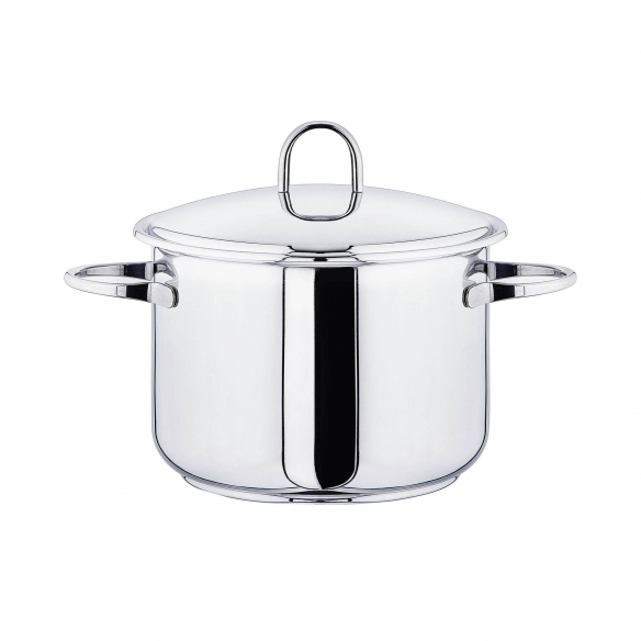 The Scandia pot, with a diameter of 28 cm, has been crafted by Serafino Zani in high-thickness Stainless Steel, a material appreciated for its resistance to corrosion and robustness. Polished to a mirror finish externally and satin-finished internally, this pot promises unbeatable ease of cleaning and maintenance, representing an excellent example of how design and functionality can merge into a single object. Contemporary and with a grand design, the Scandia pot is perfect for induction and traditional cooking surfaces, allowing for even cooking and preserving the flavor and nutritional properties of the food. Moreover, the handles, also made of stainless steel, have been designed to ensure a comfortable and secure grip, reducing the risk of slippage. The cylindrical shape of the body and that of the handles, perfectly perpendicular to it, mean that the pots in this line can be stacked inside each other, thus saving valuable kitchen space. The lid is a crucial element: it has been designed to snugly fit inside the pot, maintaining the temperature and humidity within, for perfect and tasty dishes. Choosing the Scandia pot means investing in an advanced and functional product. Purchase this gem from Serafino Zani right here, on Newpop.it! Designed by Liliana Bonomi for Serafino Zani.
