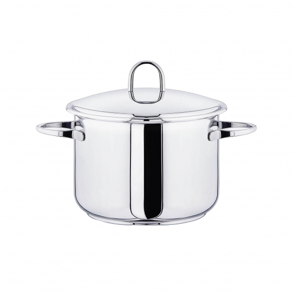 The Scandia pot, with a diameter of 24 cm, has been crafted by Serafino Zani in high-thickness Stainless Steel, a material appreciated for its resistance to corrosion and robustness. Polished to a mirror finish externally and satin-finished internally, this pot promises unbeatable ease of cleaning and maintenance, representing an excellent example of how design and functionality can merge into a single object. Contemporary and with a grand design, the Scandia pot is perfect for induction and traditional cooking surfaces, allowing for even cooking and preserving the flavor and nutritional properties of the food. Moreover, the handles, also made of stainless steel, have been designed to ensure a comfortable and secure grip, reducing the risk of slippage. The cylindrical shape of the body and that of the handles, perfectly perpendicular to it, mean that the pots in this line can be stacked inside each other, thus saving valuable kitchen space. The lid is a crucial element: it has been designed to snugly fit inside the pot, maintaining the temperature and humidity within, for perfect and tasty dishes. Choosing the Scandia pot means investing in an advanced and functional product. Purchase this gem from Serafino Zani right here, on Newpop.it! Designed by Liliana Bonomi for Serafino Zani.