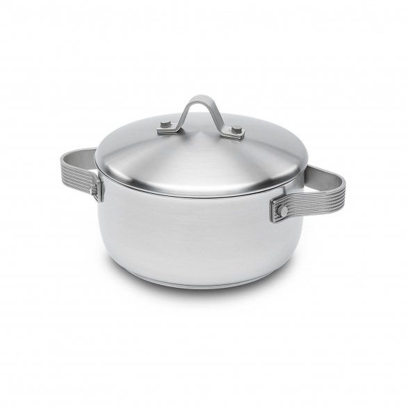The Stripes pan, with a diameter of 24 cm, has been crafted by Serafino Zani in high-thickness Stainless Steel, a material appreciated for its corrosion resistance and robustness. Polished to a mirror finish on the outside and satin-finished on the inside, this pan promises unbeatable ease of cleaning and maintenance, serving as an excellent example of how design and functionality can merge into one object. Modern with an industrial design, the Stripes pan is perfect for induction and traditional cooktops, allowing for uniform cooking while preserving the flavor and nutritional properties of the food. In Stripes, the essential and classic profile of the pan's body is captured by the aesthetic and formal strength of the handles: the elegance of their texture emphasizes the material structure created through the micro-casting process of AISI 304 stainless steel. Furthermore, these handles have been designed to ensure a comfortable and secure grip, reducing the risk of slips. The lid is a key element: it has been designed to help maintain temperature and moisture inside the pan, for perfect and tasty dishes. Choosing the Stripes pan means investing in a cutting-edge and functional product. Purchase this jewel from Serafino Zani right here, on Newpop.it! Designed by Liliana Bonomi for Serafino Zani.