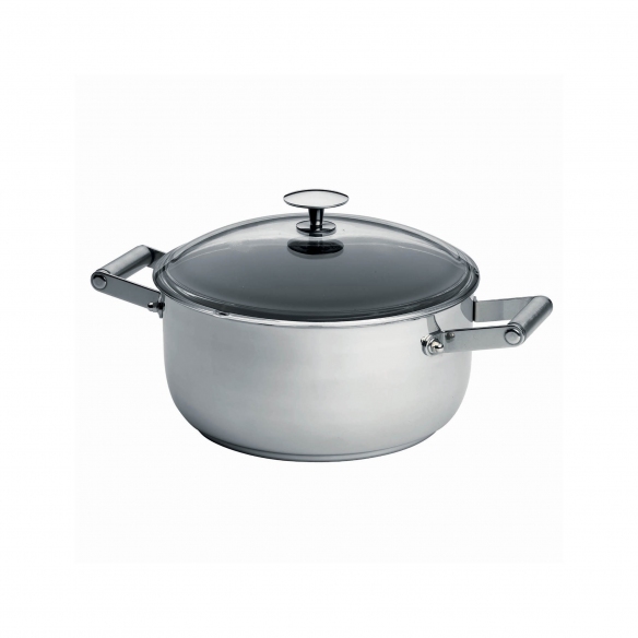 The Vickers casserole, with a diameter of 24 cm, has been crafted by Serafino Zani using high-thickness stainless steel, a double layer of non-stick coating, and titanium, materials that are admired for their corrosion resistance, elegance, and lightness. Polished to a mirror finish on the exterior, this casserole promises unmatched ease of cleaning and maintenance, representing an excellent exemplification of how design and functionality can merge into a single utensil. With its ultra-modern and precious design, the Vickers casserole is perfect for induction and traditional stoves, allowing for even cooking and preserving the flavor and nutritional properties of the food. In Vickers, the essential and classic profile of the casserole's body is captured by the aesthetic and formal power of the handles: initially made from stainless steel, they are then filled with perlite, a material that hampers the transmission of heat from the casserole itself. Moreover, these handles are designed to ensure a comfortable and secure grip, reducing the risk of slipping. The lid is a crucial element: it is designed to help maintain the temperature and humidity inside the casserole, for perfect and tasty dishes. Opting for the Vickers casserole means investing in a cutting-edge and functional product. Purchase this pearl from Serafino Zani right here on Newpop.it! Designed by Tarcisio Zani for Serafino Zani.