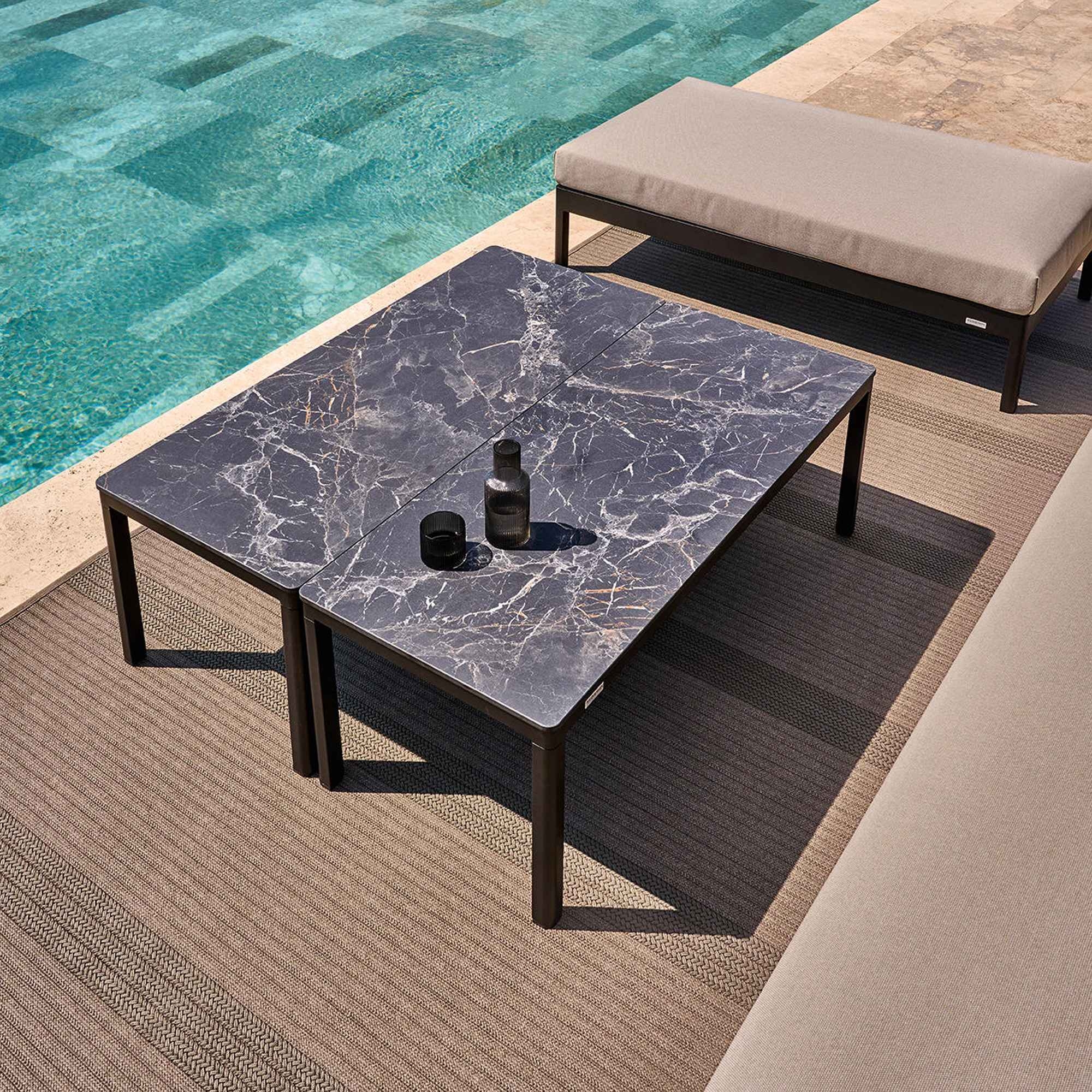 Minu 2-seater element, measuring 140x77x42h cm, is constructed with a powder-coated aluminum frame and an acrylic fabric-covered cushion. Available in a variety of colors and fabrics, the Minu 2-seater outdoor element is a celebration of personality and comfort. Designed to embody freedom of expression in design, this double module offers infinite possibilities to enrich your outdoor space. The structure, created from powder-coated aluminum, guarantees resilience and stability, elegantly withstanding natural elements. The modularity of the Minu line is further enriched with tables and modules in various sizes and designs, guaranteeing an impeccable outdoor space down to the last detail. Designed by Christian Hoisl for Weishäupl.