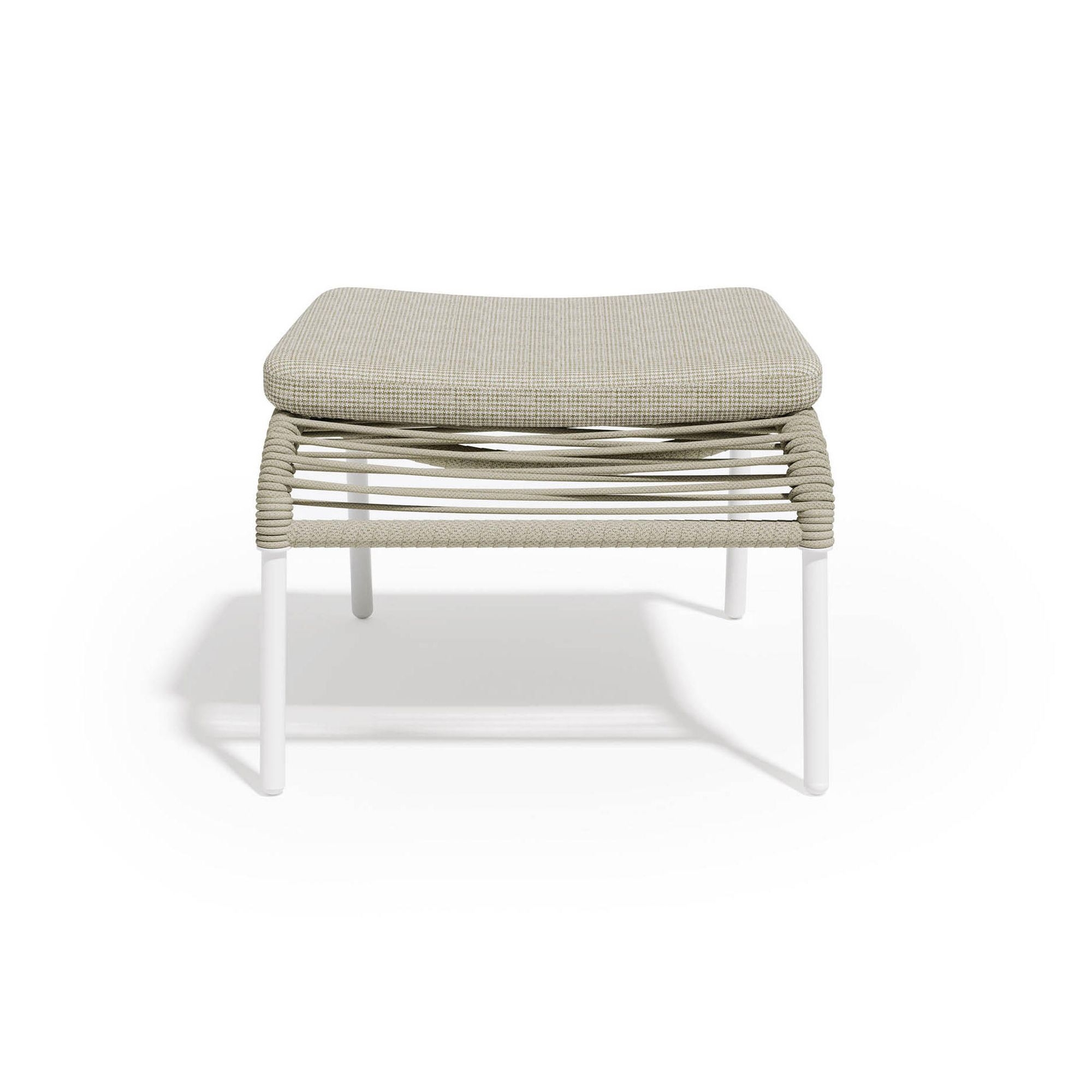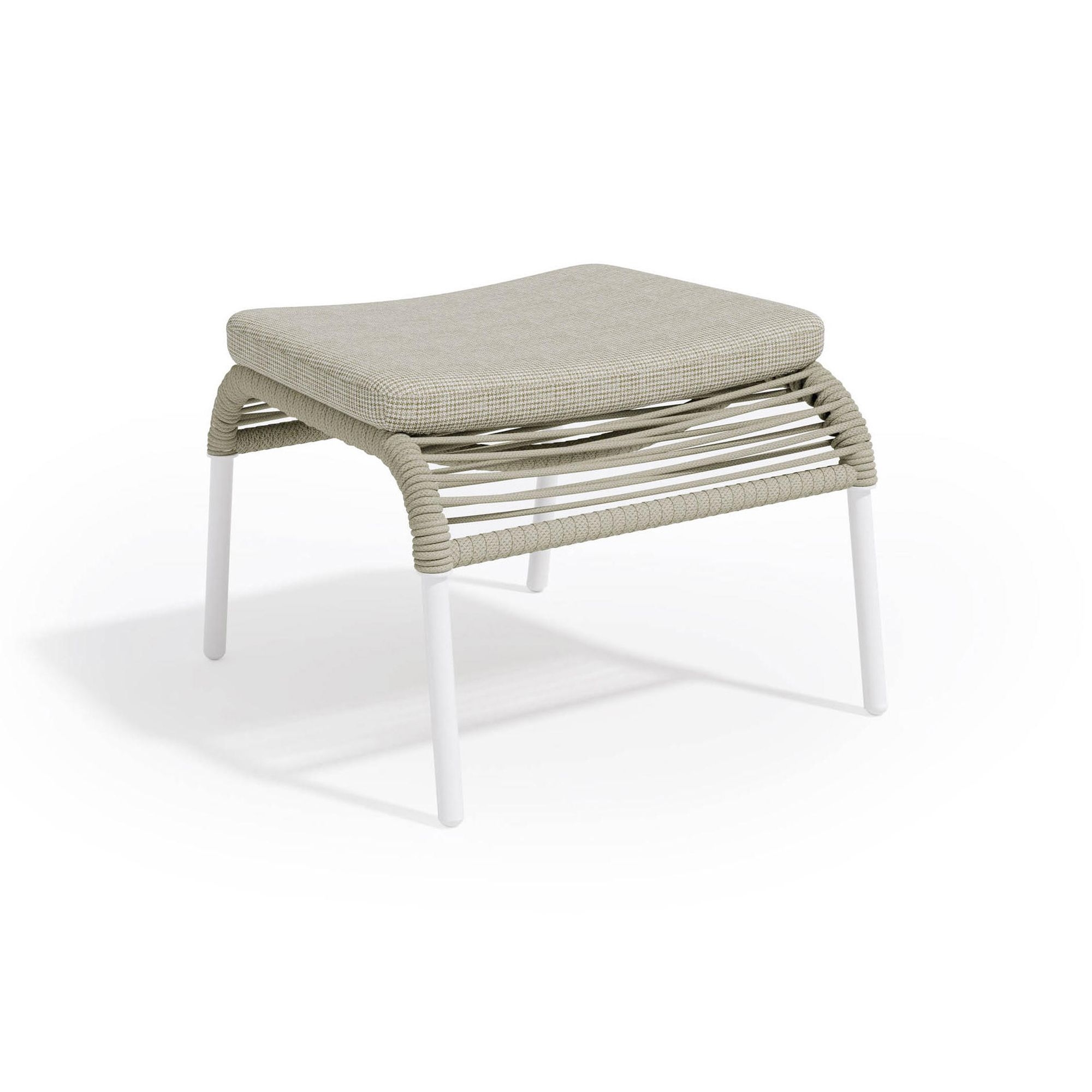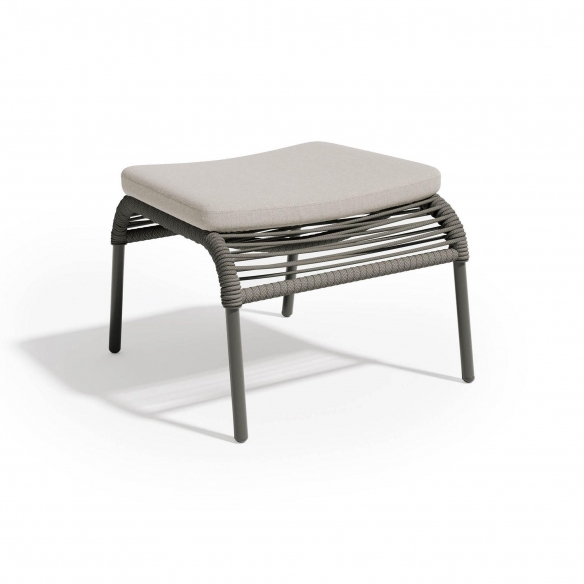 The Pleasure 2.0 outdoor pouf, crafted with a structure in white or graphite aluminum coated in an interwoven texture of ropes resembling textile fibers and a seat cushion covered in outdoor fabric, enhances gardens, terraces, and pool edges with modern versatility and elegance, providing extra seating or a comfortable support for fully enjoying your relaxation moments. Made with high-quality materials and designed to withstand the elements, Pleasure 2.0 boasts a clean and minimalist line that suits any outdoor setting. During warm summer days or peaceful evenings outdoors, the Pleasure 2.0 pouf proves to be an indispensable companion, adding a touch of timeless comfort and relaxation. More than just a functional piece, but also a true symbol of design, its selectable colors and fabrics make it a custom accessory for your taste, perfectly integrating with the existing outdoor furniture style. The Pleasure 2.0 pouf is easy to move and clean, representing a practical solution as well as an aesthetically appealing option to enrich your open-air space. Designed by Atmosphera Creative Lab.