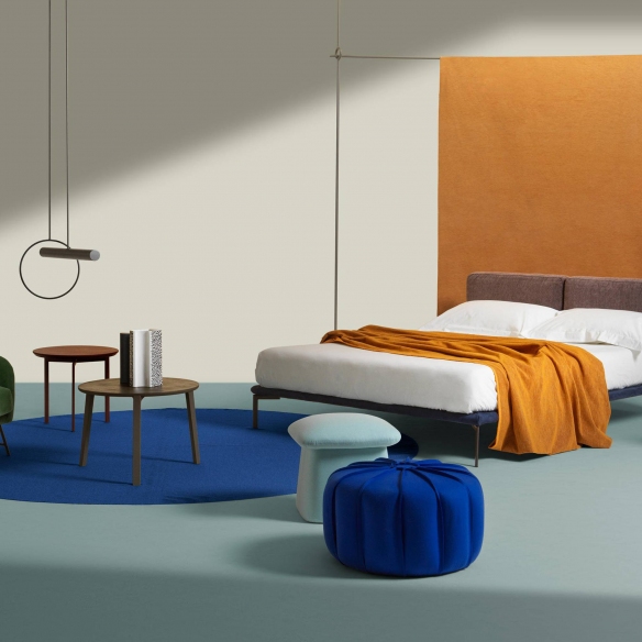 Marrakech pouf with a diameter of 40 cm and a height of 45 cm, made with a wooden structure covered in polyurethane rubber, fabric upholstery with piping or raw cut upholstery only on selected fabrics or leather. Elegant and colourful, the Marrakech pouf combines oriental elegance with Italian tailoring. With its raw cut stitching and chromatic contrast, this pouf is a design element that can be adapted to different domestic contexts. Designed by Enrico Cesana for MyHome Collection.