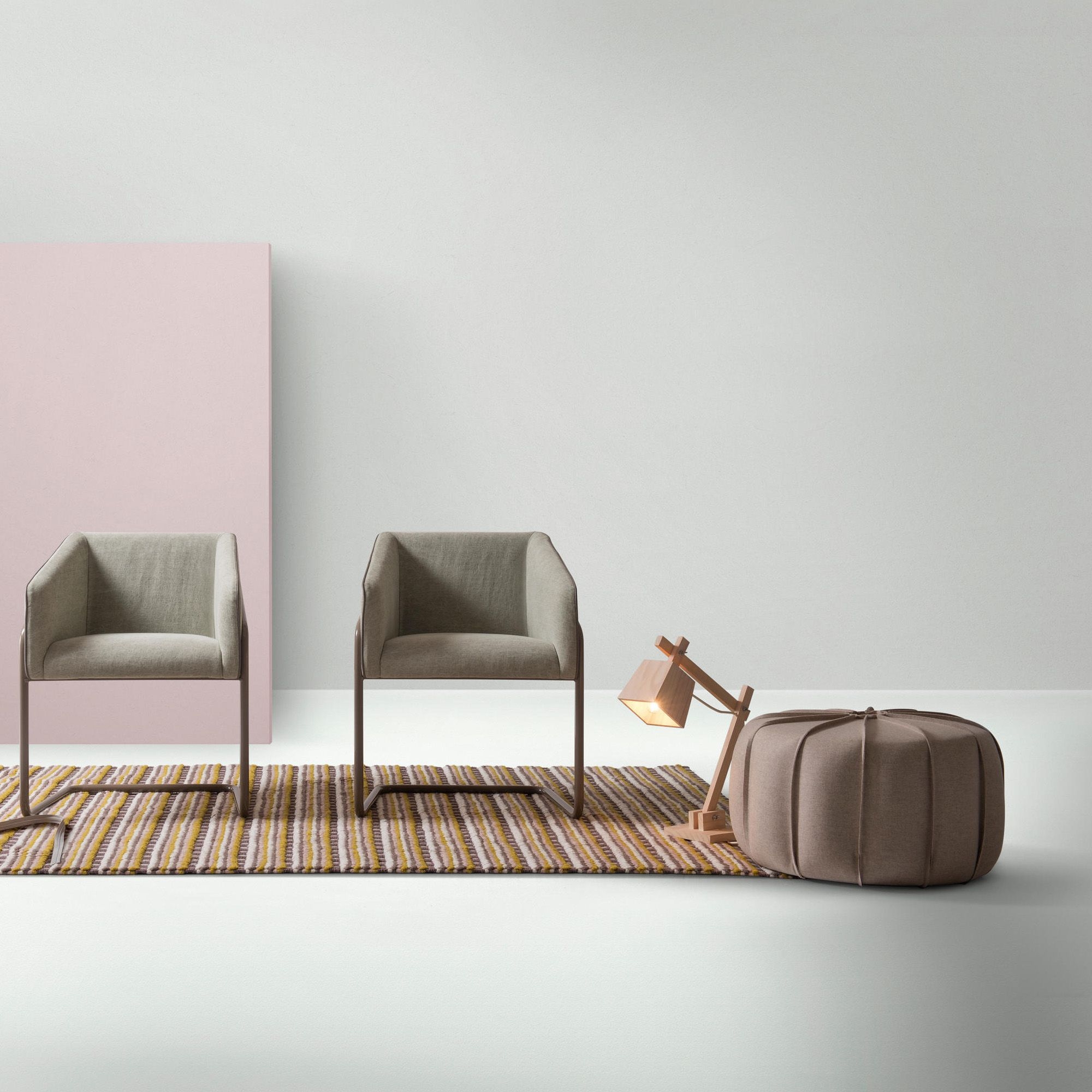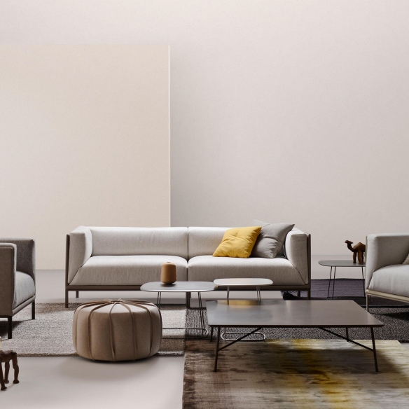 Marrakech pouf with a diameter of 480 cm and a height of 33 cm, made with a wooden structure covered in polyurethane rubber, fabric upholstery with piping or raw cut upholstery only on selected fabrics or leather. Elegant and colourful, the Marrakech pouf combines oriental elegance with Italian tailoring. With its raw cut stitching and chromatic contrast, this pouf is a design element that can be adapted to different domestic contexts. Designed by Enrico Cesana for MyHome Collection.