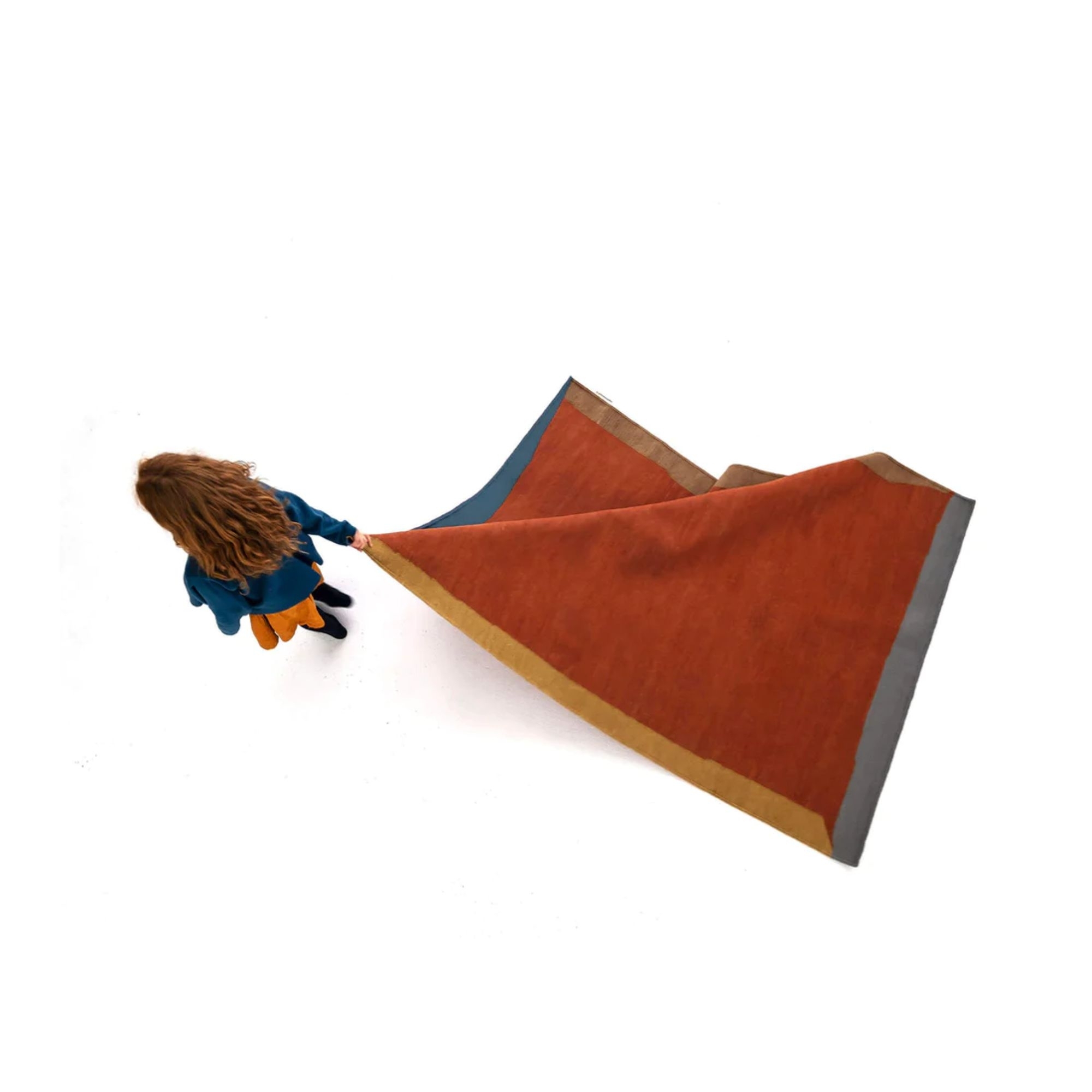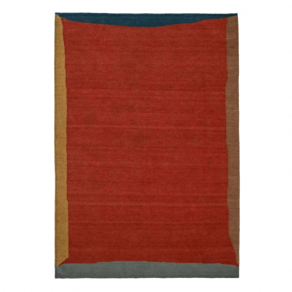 Tones Tufted 1 rug made of 100% virgin wool. The Tufted 1 rug is a real explosion of color that manages to bring energy and warmth to every room. With its predominant red color in the center, it immediately attracts attention and is surrounded by a frame composed of shades of brown, blue and grey, which create a tantalizing and eye-catching contrast. The combination of these colors is particularly fascinating thanks to the 'hand tufting' technique, which allows for an intricate detail of colors and shapes. This rug, halfway between art and decor, will make a bold statement in any setting. Designed by Claudia Valsells for Nanimarquina.