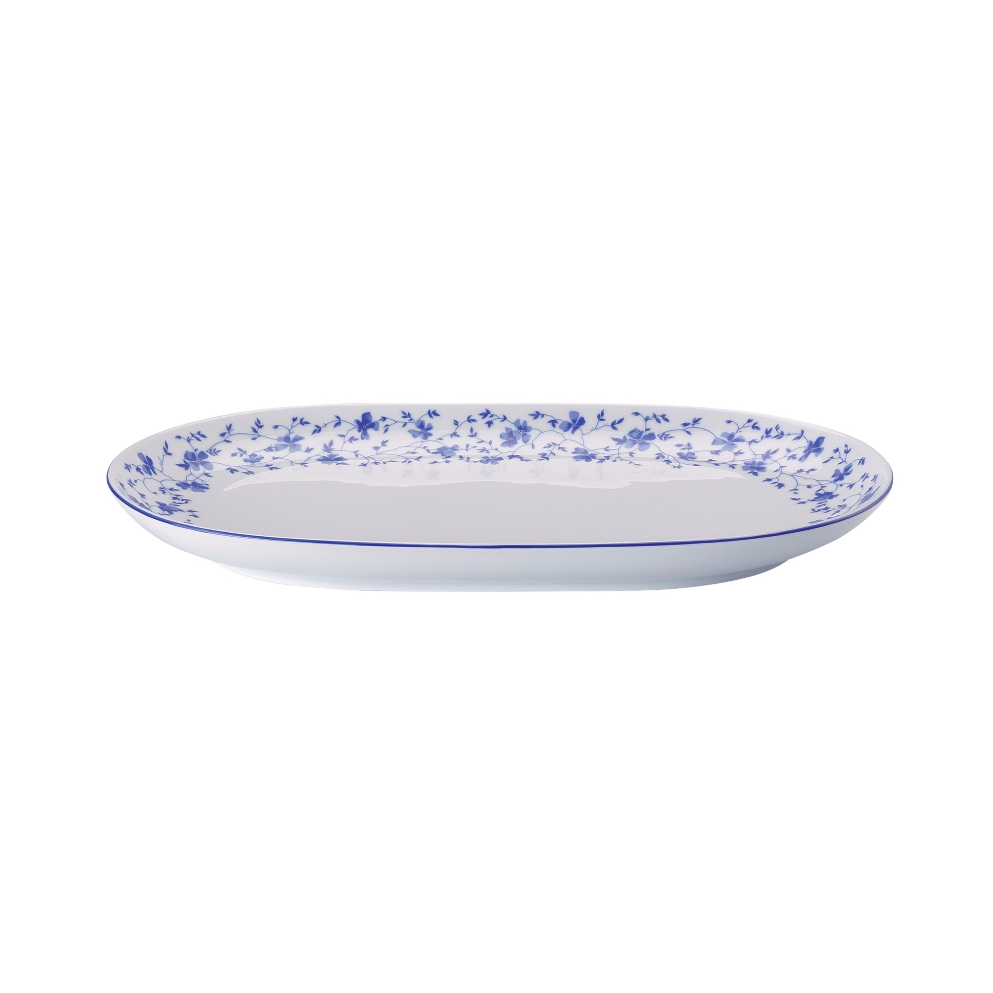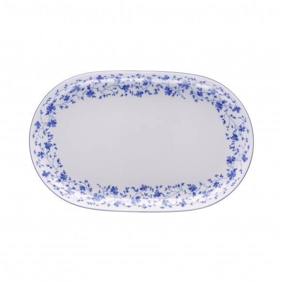 Form 1382 Blaublüten serving plate (32x20 cm) crafted from decorated porcelain. This serving plate is not merely a vessel for delightful treats; it becomes a central point of attraction on any table, inviting guests to linger over the beauty of its details and the brilliance of its coloring. Made from the highest quality porcelain, this plate is distinguished by its delicate Blaublüten design, where refined blue floral patterns seem to dance across the white surface as if caught in a gentle breeze. Versatility is one of its key features: perfect for serving a wide array of dishes, from warm comfort food to sophisticated chef creations, it effortlessly adapts to both formal and casual settings. Made by Rosenthal.