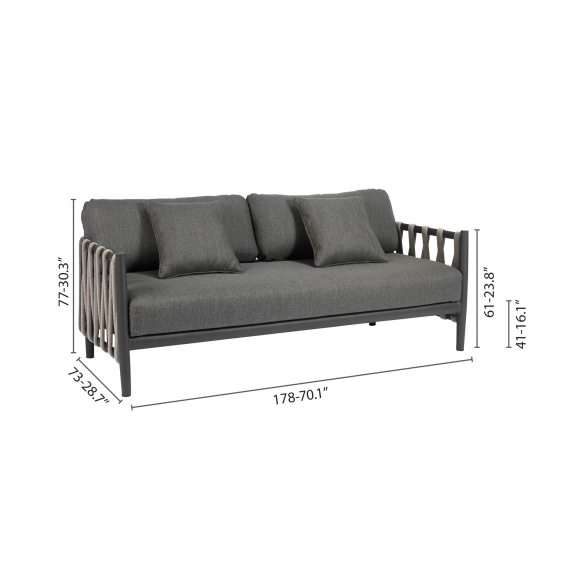 The 2.5-seater Switch Rope sofa, with cushions, is a beacon of comfort crafted from the highest quality materials such as aluminum, fabric, and rope. Its aluminum frame is both sturdy and light, ensuring the sofa's durability and easy maintenance. Equipped with extraordinarily soft cushions, similar to clouds, the Switch Rope sofa brings the cozy intimacy of your home's interior to the outdoors. The Switch Rope invites all your family and friends to enjoy moments of well-being. Additionally, the Switch Rope sofa beautifies any outdoor or indoor space with its unparalleled style. Whether placed on a shaded terrace, in the garden, or in an indoor living area, the Switch Rope will be perfect, serving as an irresistible invitation to moments of serenity and sociability. The 2.5-seater Switch Rope sofa turns the atmosphere warm and welcoming and is capable of creating oases of pure relaxation.