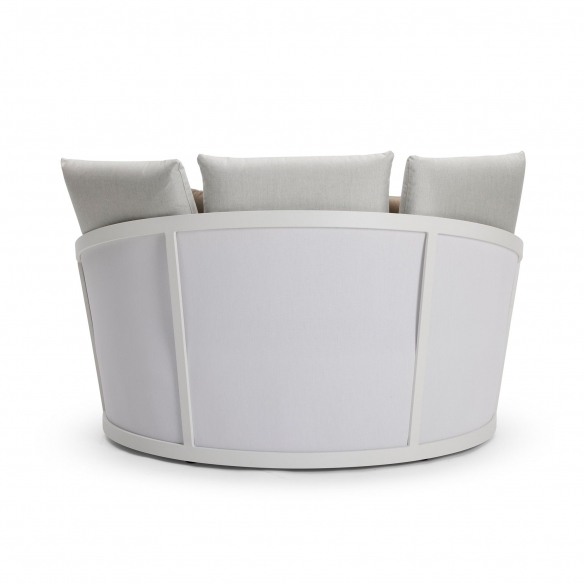 The Cielo Daybed with cushions is an exquisite outdoor piece featuring a sturdy structure made of high-quality aluminum, epitomizing the perfect outdoor relaxation experience. The Cielo Daybed is available in two beautiful color options, and will complete your haven of beauty with its captivating and luxurious design, ensuring longevity and easy maintenance. The backrest of this daybed is crafted from the highest quality Batyline fabric, which is also UV resistant. The ultra-soft cushions are covered in fabrics that withstand various weather conditions like sun and moisture, making them ideal for outdoor use. This outdoor sofa is perfect for any exterior space, from gardens to terraces, adding a touch of style and comfort to your home. The Cielo Daybed features pleasant and clean lines, with a configuration that invites you to stretch out and enjoy the tranquility of your surroundings. This daybed is not just a piece of furniture but a true oasis of well-being that transforms any outdoor corner of your home into a welcoming and stylish retreat.