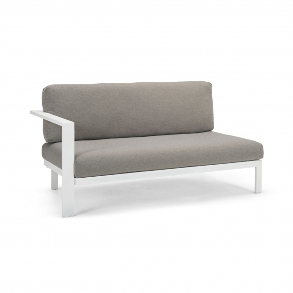 The Cubic right corner double sit sofa with cushions is a masterpiece constructed from robust and sleek aluminum. This magnificent sofa is available in 6 stunning colors and features a cutting-edge style, perfectly suited for both indoor and outdoor spaces thanks to the high-quality materials resistant to various weather conditions, from humidity to hot sun. The Cubic cushions are as light as a cloud, ultra-soft, and covered in durable fabrics, inviting anyone to experience true moments of relax. The right corner of the Cubic sofa has been designed to optimize available space, making it ideal for furnishing large verandas, small terraces, or even the living room of your home, creating an elegant and stylish atmosphere. Its geometric design embodies a sense of contemporary class. The choice of high-quality materials, aimed at ensuring maximum durability and ease of maintenance over time, makes the Cubic sofa a lasting investment in terms of functionality and beauty. Diphano always pays meticulous attention to detail in its products, and with the Cubic sofa, it has managed not just to design a piece of furniture, but to create a true experience of comfort and style.