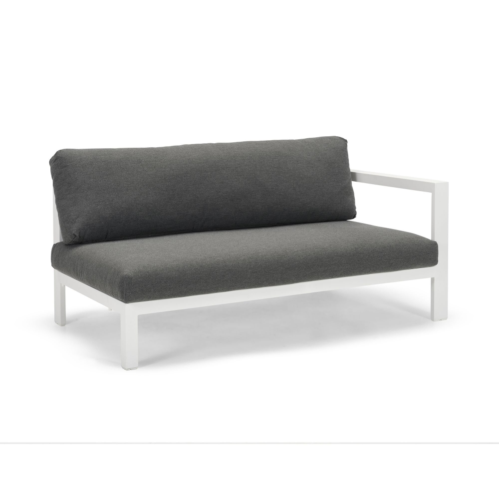 The Cubic double sit sofa with cushions is a masterpiece constructed from robust and sleek aluminum. This magnificent sofa is available in 6 stunning colors and features a cutting-edge style, perfectly suited for both indoor and outdoor spaces thanks to the high-quality materials resistant to various weather conditions, from humidity to hot sun. The Cubic cushions are as light as a cloud, ultra-soft, and covered in durable fabrics, inviting anyone to experience true moments of relax. The left corner of the Cubic sofa has been designed to optimize available space, making it ideal for furnishing large verandas, small terraces, or even the living room of your home, creating an elegant and stylish atmosphere. Its geometric design embodies a sense of contemporary class. The choice of high-quality materials, aimed at ensuring maximum durability and ease of maintenance over time, makes the Cubic sofa a lasting investment in terms of functionality and beauty. Diphano always pays meticulous attention to detail in its products, and with the Cubic sofa, it has managed not just to design a piece of furniture, but to create a true experience of comfort and style.