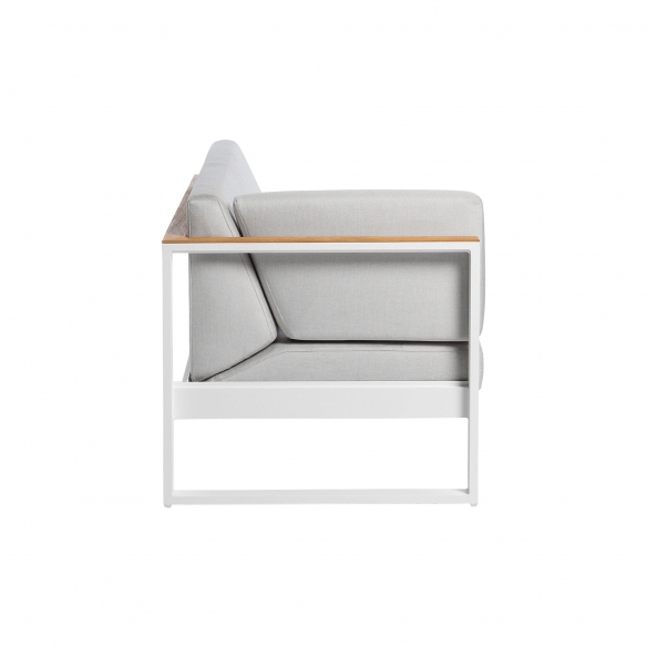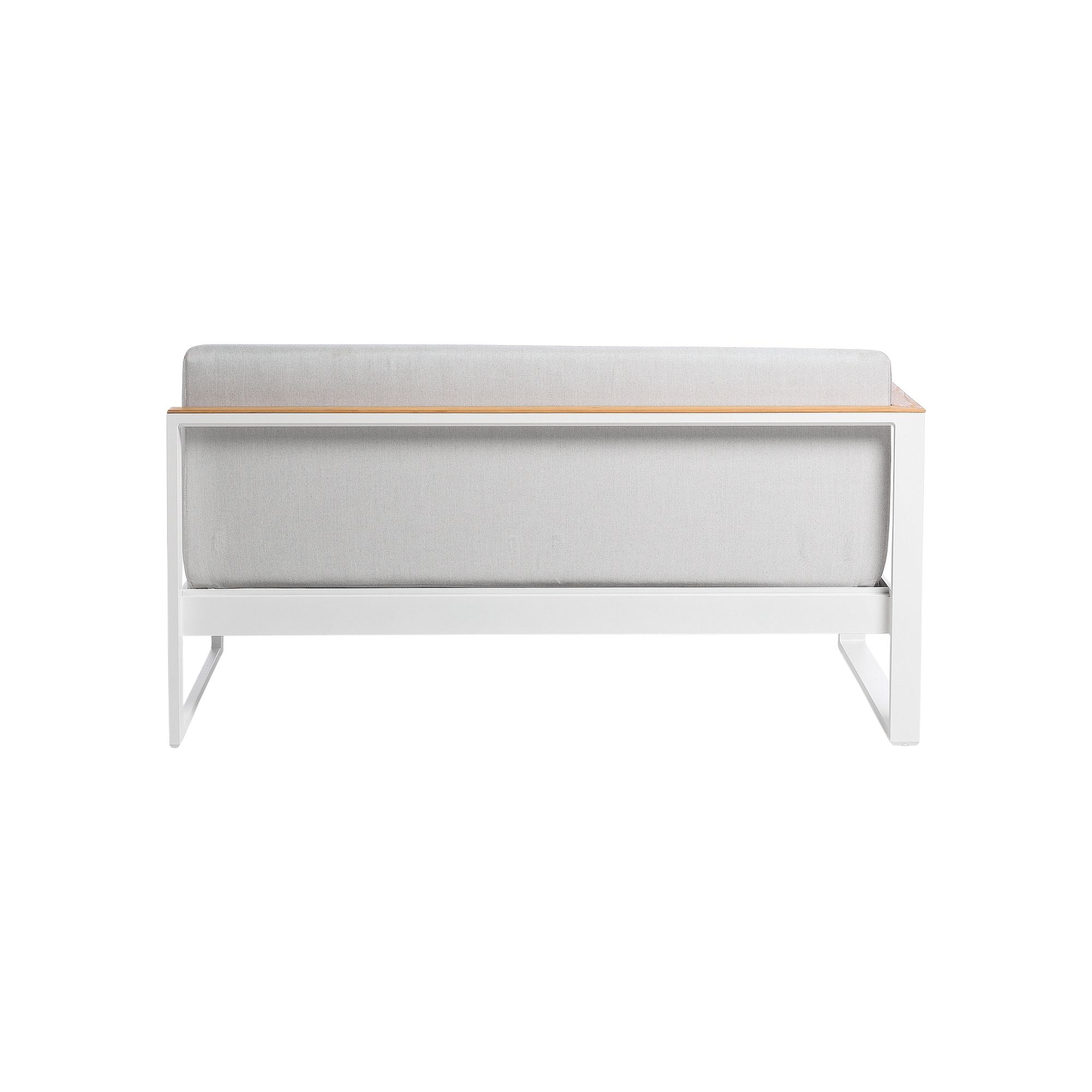 The right double seat Landscape Teak, with integrated cushions, has been crafted with meticulous attention to detail and combines the durability of an aluminum structure with the warm aesthetic of Teak wood that promises resistance to various climate changes, perfect for outdoor use. Available in two different wonderful combinations, the Landscape Teak double seat strikes a perfect balance between natural elegance and comfort, perfect for those looking to enrich their spaces with a touch of endless elegance. Landscape Teak offers contemporary lines that make it unique and sophisticated, suitable to match any style, from modern to traditional. Thanks to the cushions made with soft and fluffy fabric, this sofa is ideal for family afternoons and gatherings with friends. Landscape Teak has a length of 150 cm, perfect to accommodate two people, promoting moments of relaxation and sociability in the open air with your significant other. Its versatile design makes it suitable for any setting, from a terrace overlooking the sea to a garden with a swimming pool, all the way to a modern living room, where the Teak wood adds an element of naturalness and serenity. Choosing the right double seat Landscape Teak means opting for a solution that epitomizes well-being and style.