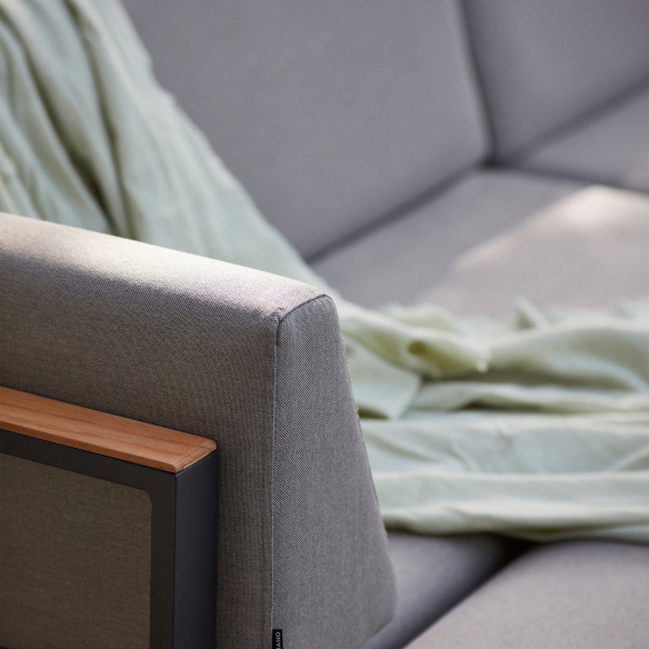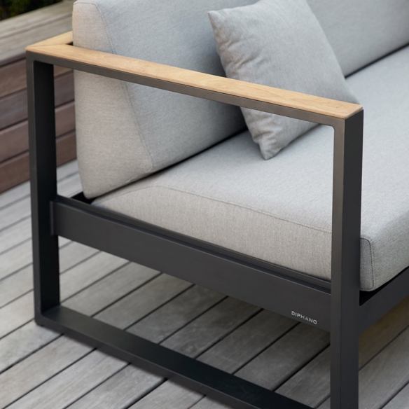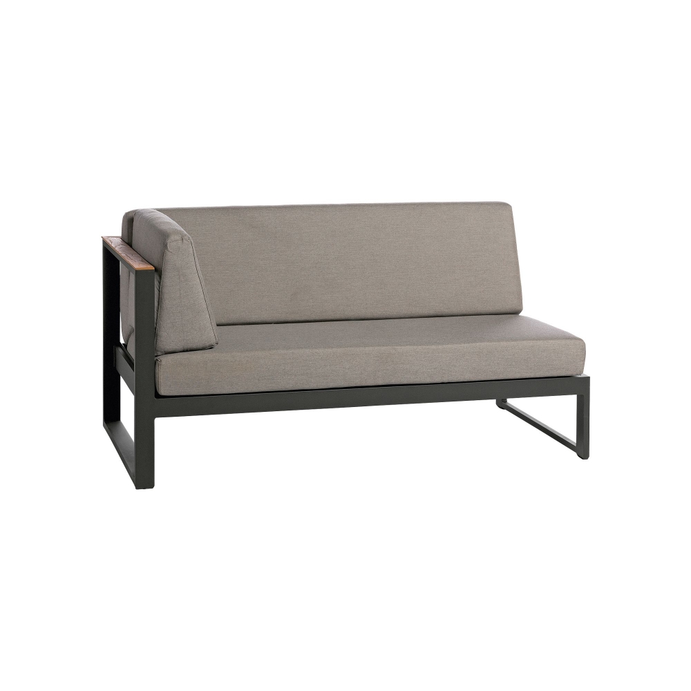 The right double seat Landscape Teak, with integrated cushions, has been crafted with meticulous attention to detail and combines the durability of an aluminum structure with the warm aesthetic of Teak wood that promises resistance to various climate changes, perfect for outdoor use. Available in two different wonderful combinations, the Landscape Teak double seat strikes a perfect balance between natural elegance and comfort, perfect for those looking to enrich their spaces with a touch of endless elegance. Landscape Teak offers contemporary lines that make it unique and sophisticated, suitable to match any style, from modern to traditional. Thanks to the cushions made with soft and fluffy fabric, this sofa is ideal for family afternoons and gatherings with friends. Landscape Teak has a length of 150 cm, perfect to accommodate two people, promoting moments of relaxation and sociability in the open air with your significant other. Its versatile design makes it suitable for any setting, from a terrace overlooking the sea to a garden with a swimming pool, all the way to a modern living room, where the Teak wood adds an element of naturalness and serenity. Choosing the right double seat Landscape Teak means opting for a solution that epitomizes well-being and style.