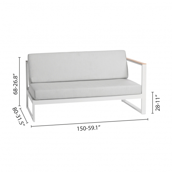 The left double seat Landscape Teak, with integrated cushions, has been crafted with meticulous attention to detail and combines the durability of an aluminum structure with the warm aesthetic of Teak wood that promises resistance to various climate changes, perfect for outdoor use. Available in two different wonderful combinations, the Landscape Teak double seat strikes a perfect balance between natural elegance and comfort, perfect for those looking to enrich their spaces with a touch of endless elegance. Landscape Teak offers contemporary lines that make it unique and sophisticated, suitable to match any style, from modern to traditional. Thanks to the cushions made with soft and fluffy fabric, this sofa is ideal for family afternoons and gatherings with friends. Landscape Teak has a length of 150 cm, perfect to accommodate two people, promoting moments of relaxation and sociability in the open air with your significant other. Its versatile design makes it suitable for any setting, from a terrace overlooking the sea to a garden with a swimming pool, all the way to a modern living room, where the Teak wood adds an element of naturalness and serenity. Choosing the left double seat Landscape Teak means opting for a solution that epitomizes well-being and style.