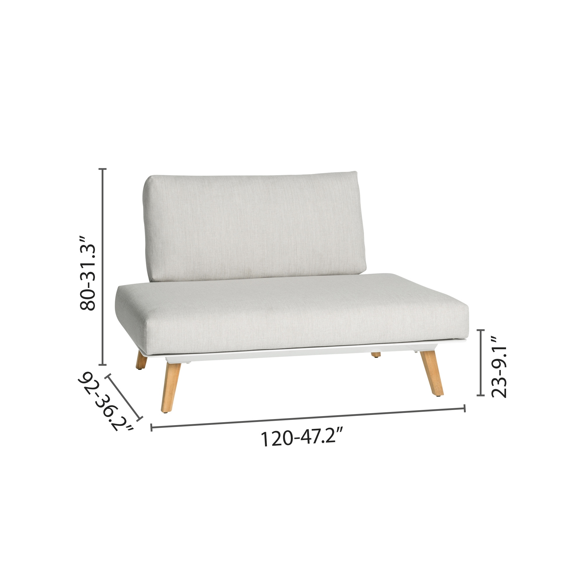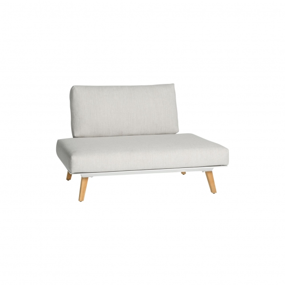 The Link 01 End Seat, 120 cm, with cushions included, is made from the highest quality materials: it boasts a durable aluminum structure that ensures stability and support, the delicately exquisite Teak wood that promises durability, and the padded fabric that offers ultimate softness and comfort. This outdoor seat is an ideal pick for those who seek to combine quality and sophistication. The Link 01 end seat is perfect for making the most of home spaces, especially larger, open-plan areas, offering an elegant and sophisticated furnishing solution. The Link 01 seat comes with cushions, soft clouds crafted from high-quality fabric, easily removable for washing thanks to Velcro fastenings, promising an irresistible welcome to anyone wishing to relax. Link 01 enhances any environment with its impeccable and comfortable style, whether a veranda or a living room. Its design, characterized by clean and modern lines, seamlessly adapts to various decoration styles, from the most classic to the most modern. Choosing this Link 01 end seat is an aesthetically pleasing, extremely practical, and functional investment.