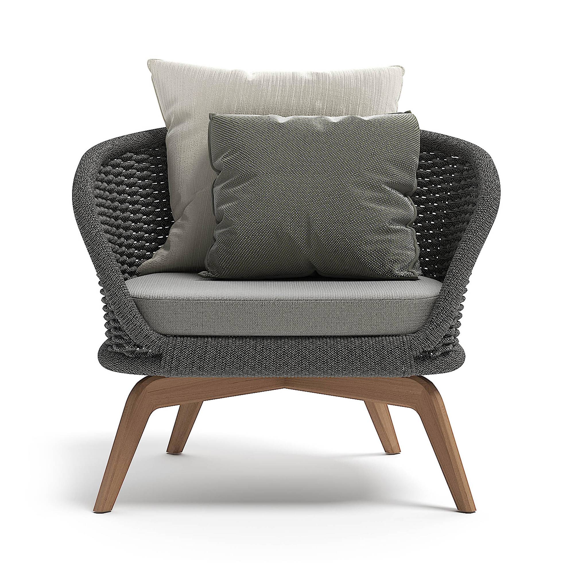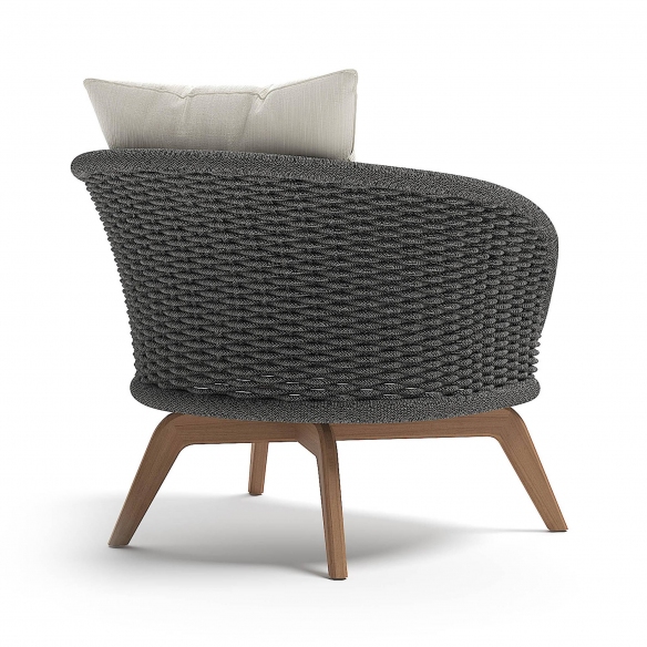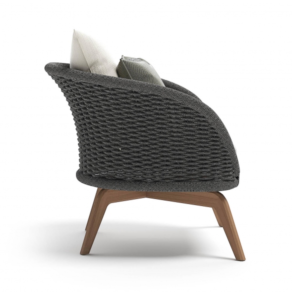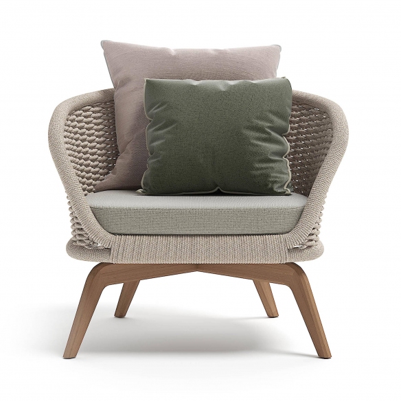 The Ludo .L1 outdoor armchair, crafted with a natural Teak wood base, handwoven cord backrest, and a cushion covered in outdoor fabric, epitomizes the perfect blend of design and comfort—a true style gem for any outdoor space. Distinctive in its organic shape and a base of natural Teak wood, this armchair radiates warmth and delivers a strong visual sculptural impact. Merging formal lines with a soft padded backrest, Ludo offers a sophisticated aesthetic without compromising on comfort. This piece of furniture is an invitation to indulge in pure relaxation outdoors, all while ensuring an unmistakable touch of elegance and timeless allure. Beyond its natural beauty and comfort, the Ludo L1 armchair is constructed with premium materials that guarantee durability and weather resistance, ideal for enjoying long hours in the garden or on a terrace. The Teak wood adds a luxurious element and sturdy foundation, making this armchair a long-term investment. Experience the art of outdoor living with the Ludo L1 outdoor armchair, an authentic design masterpiece from the creative team at Atmosphera Creative Lab.