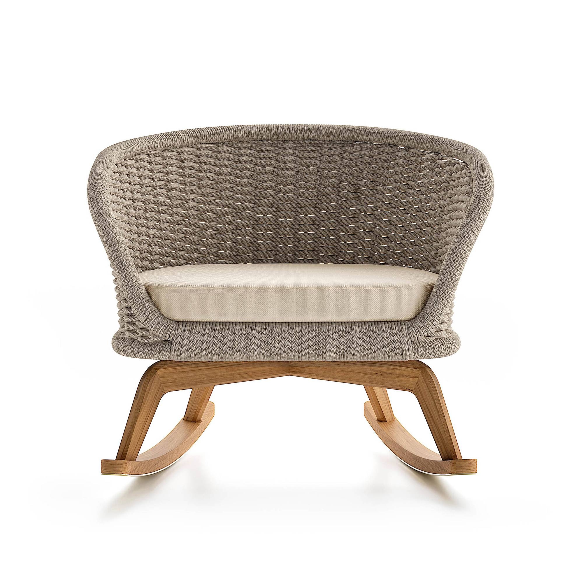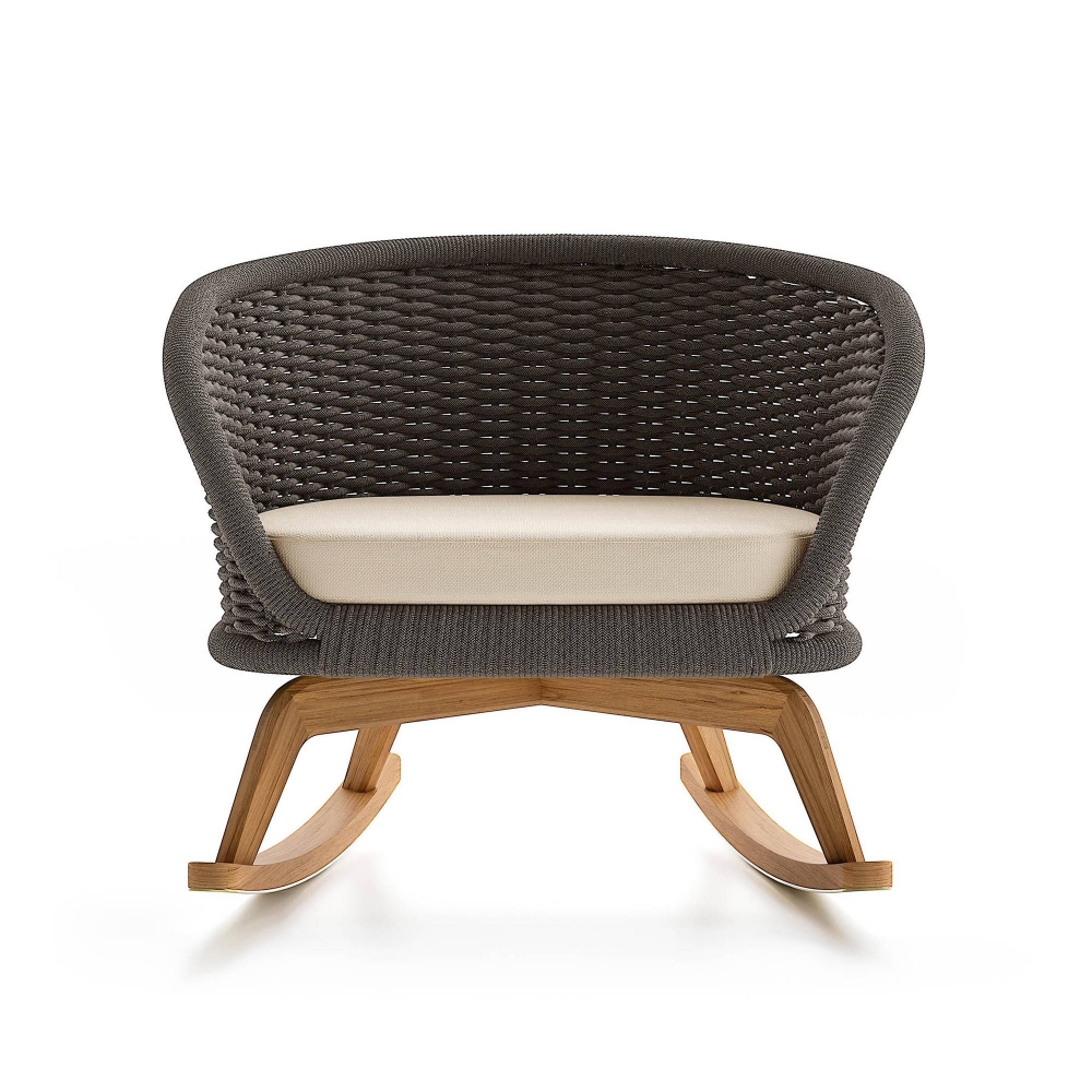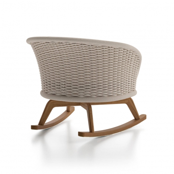 Experience the ultimate relaxation with the Ludo .L6 outdoor rocking chair, impeccably designed with a natural Teak wood base, handwoven cord backrest, and a seat cushion covered in outdoor fabric. Meticulously created by the visionary designers at Atmosphera Creative Lab, this rocking chair represents the ideal choice for those wishing to enrich their open-air space with a touch of sophistication and functionality. The robust and welcoming structure of the Ludo .L6 is made with top-quality materials, ensuring durability and resistance to the elements, allowing you to enjoy pure outdoor pleasure worry-free. The uniqueness of this rocking chair lies in its ergonomic design, ensuring maximum comfort and support, enveloping the body in a cozy and comfortable seat ideal for long relaxation sessions. A distinguishing feature of the Ludo .L6 is its smooth and reassuring rocking movement, designed to offer an unparalleled relaxation experience, perfect for unwinding both mind and body under the open sky. Whether it's reading your favorite book, enjoying the tranquility of the garden, or simply savoring a moment of calmness, the Ludo .L6 rocking chair will accompany you in your moments of absolute well-being.