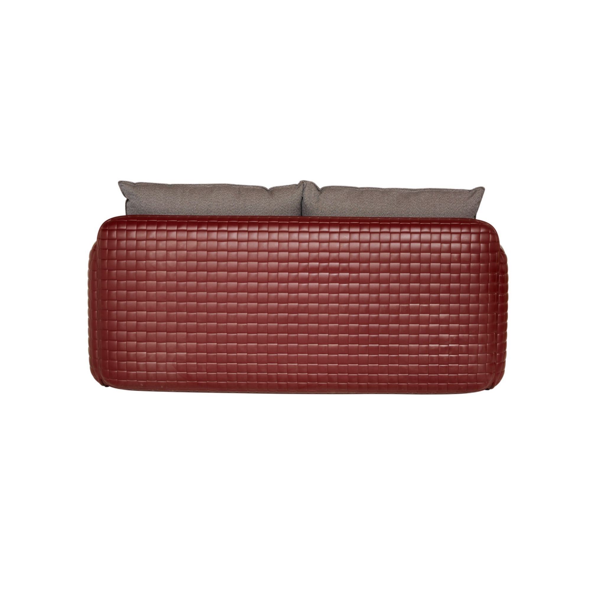 The Mara outdoor two-seater sofa is a masterpiece of design created by Slide entirely in 100% recyclable polyethylene, a material valued and admired for its durability, longevity, and versatility, with cushions made of waterproof fabric suitable for both indoor and outdoor use. The weaving of leather is brought to life in the entire texture of Mara's structure, and the variety of colors makes it matchable with any setting and type of decor: it can be placed in a large garden with a pool, on a chic terrace, or in both residential and commercial indoor spaces, adding elegance and class to all areas. Its soft lines envelop the body, ensuring a relaxing and enjoyable seat; moreover, it leverages the material's lightness to facilitate moving and reorganizing spaces, making each moment of relaxation or socialization even more satisfying and personalized. Designed by Lorenza Bozzoli for Slide.