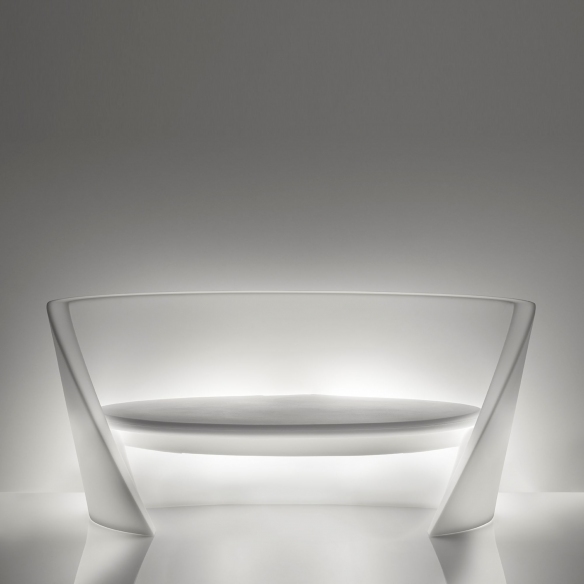 The Rap luminous sofa is a fantastic piece of furniture crafted by Slide using the rotational moulding technique with 100% recyclable polyethylene, a versatile, long-lasting material resistant to weather conditions, ideal for both indoor and outdoor use. This luminous sofa is available in thirteen vibrant colors, and thanks to its shape that resembles two enveloping and warm arms, it perfectly matches any type of decor and setting: from a terrace to a poolside garden, in bars or pubs, or indoor environments such as living rooms or lounges, always managing to create a welcoming and relaxed atmosphere. Rap is a two-seater sofa that makes its occupants comfortable and facilitates mutual interaction. Additionally, the sofa can be personalized through the choice of colors and the addition of a soft waterproof fabric cushion that enhances seating comfort, enabling full expression of personal style. The Rap luminous sofa is the ideal choice for those looking to transform their outdoor or indoor spaces into true havens of paradise, where aesthetics and functionality converse in perfect harmony. Designed by Karim Rashid for Slide.