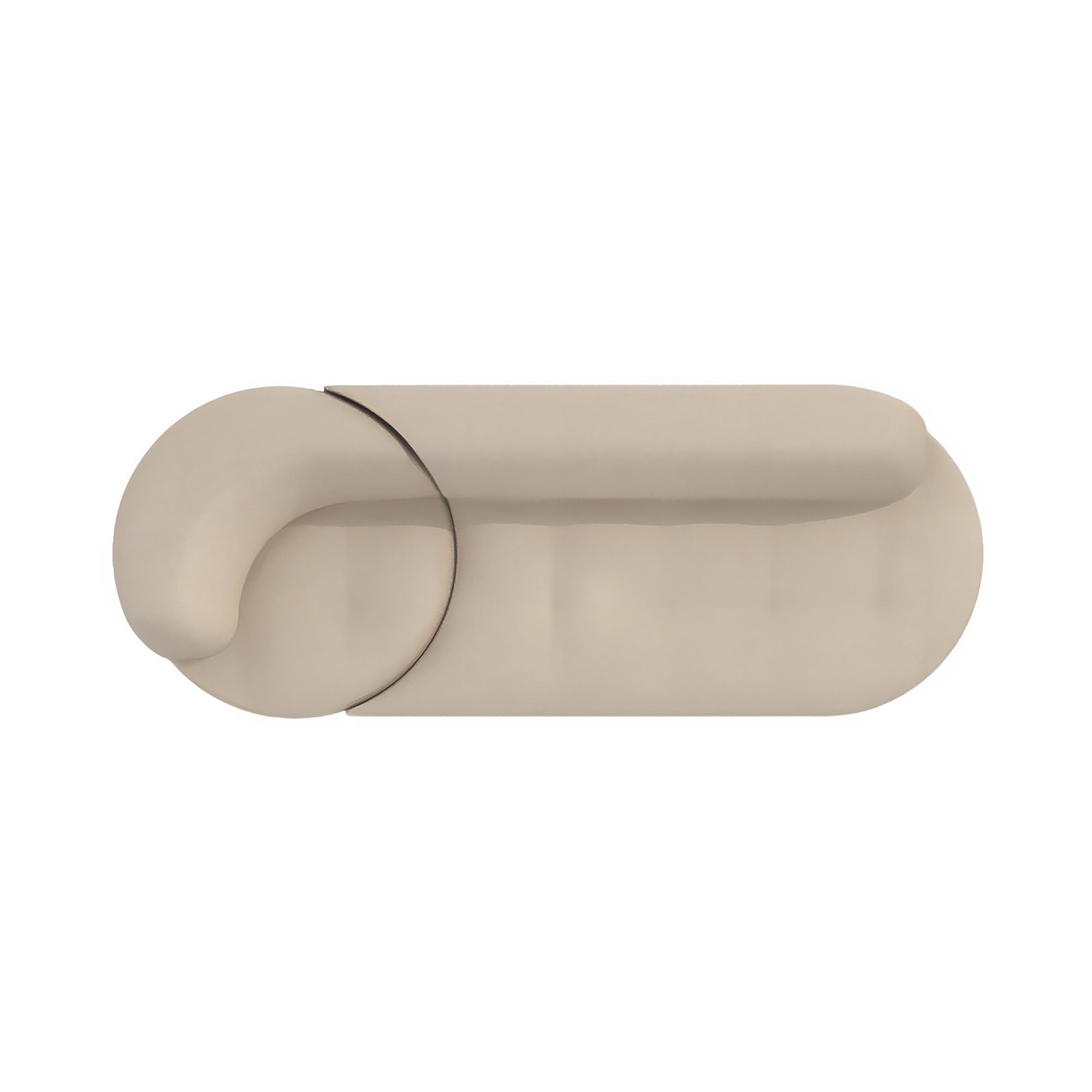 Bordone 110 UP dormeuse sofa (with an integrated swivel armchair on the left) made with laser cut steel legs, painted in the colors as per sample card. Structure in fir plywood covered in coupled velveteen and fabric, seat and back covered in non-deformable polyurethane of different densities, dacron and polyester fiber lining. Bordone 110 UP stands out for its soft and curvilinear design, which gives off a feeling of protection and welcome. With an enveloping backrest, the Bordone 100 UP sofa invites you to share in intimacy, according to the needs of the moment. It's like a soft cocoon in which to retreat for some privacy or create a stage for family life. Designed by angelettiruzza for MyHome Collection.