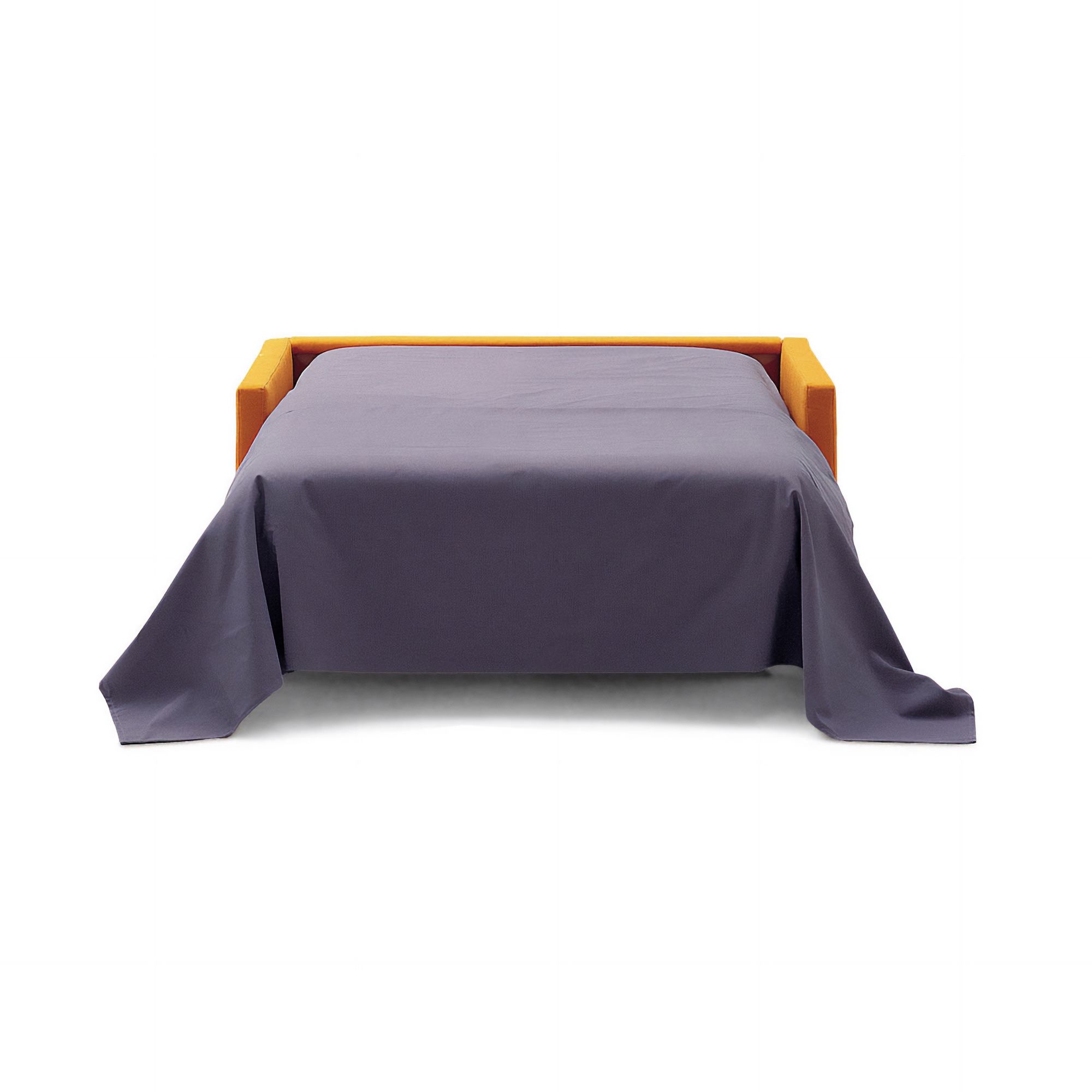 Go Small double sofa bed made with steel structure, electro-welded steel mesh base with elastic top and C.F.C.-free polyurethane mattress. Removable covers in various fabrics and colours, the Go Small double sofa bed is the modern and intelligent furnishing solution, designed for those seeking the fusion of functionality, style and ingenious simplicity. Thanks to its geometric and linear structure, the Go Small adapts easily to any living space, transforming any environment into a welcoming and stylistically impeccable scenario. Thanks to its technical features, the Go Small transforms from sofa to bed in a few simple steps, making the conversion from day to night more comfortable than ever. What initially appears as an elegant sofa for your living room quickly becomes a comfortable and restful bed, perfect for hosting friends and family or simply for enjoying a well-deserved rest. The steel structure of Go Small guarantees not only a fascinating design but also sturdiness and reliability over time, even if subjected to frequent daily use. The choice of durable materials and attention to detail make the Go Small a wise choice for those who don't want to give up quality. Made by Campeggi.