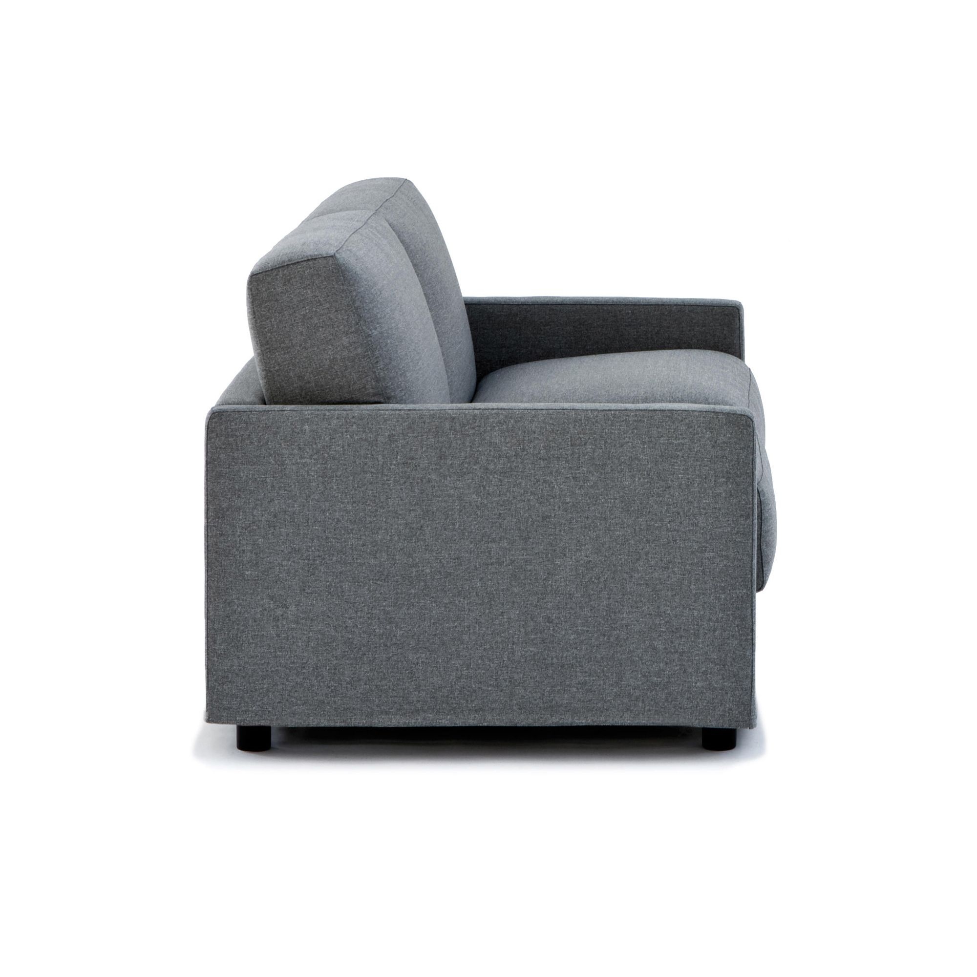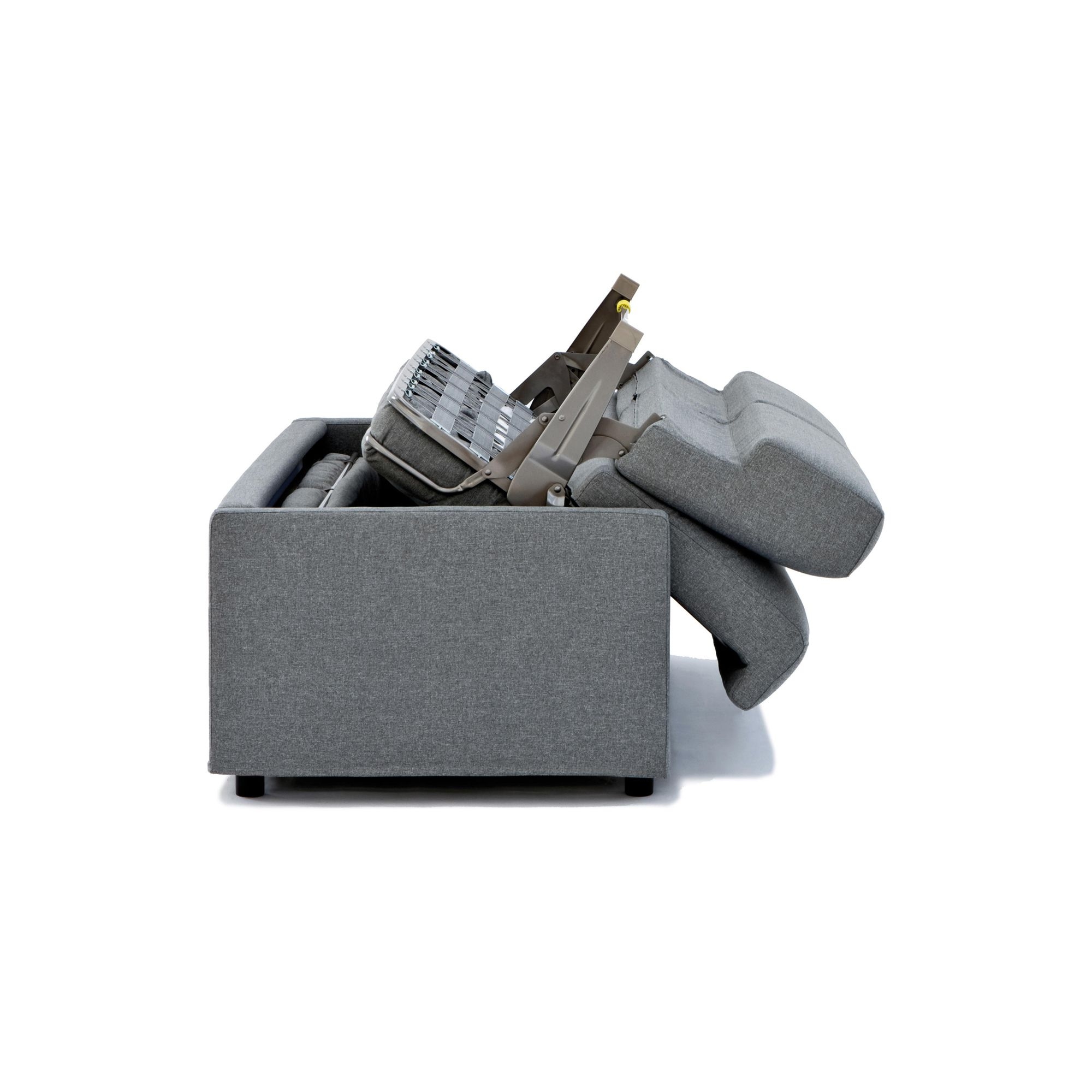 Go.up double sofa bed made with anti-sagging stratified beech structure, polyurethane padding and mattress available in expanded polyurethane, springs or memory. Removable covers in a wide range of fabrics and colours, the Go.up double sofa bed represents the latest innovation in the renowned Go collection of transformable sofas, an already consolidated name for the introduction of revolutionary solutions in the multifunctional furniture sector. This novelty stands out for its simplified extraction mechanism, which allows you to transform the sofa into a large double bed quickly and effortlessly, ensuring immediate comfort for guests or for everyday use. The Go.up sofa bed embodies the perfect combination of aesthetics and functionality, making it a winning solution for anyone looking to optimize spaces without sacrificing style. Thanks to a design designed for maximum adaptability, offering different seating configurations and the transformation into a comfortable double bed, Go.up is the perfect option to satisfy the different needs of daily or situational use. The easy and effective opening system eliminates the effort and time spent preparing a bed, making it an ideal solution for those living a dynamic life or for spontaneous hospitality. Made by Campeggi.