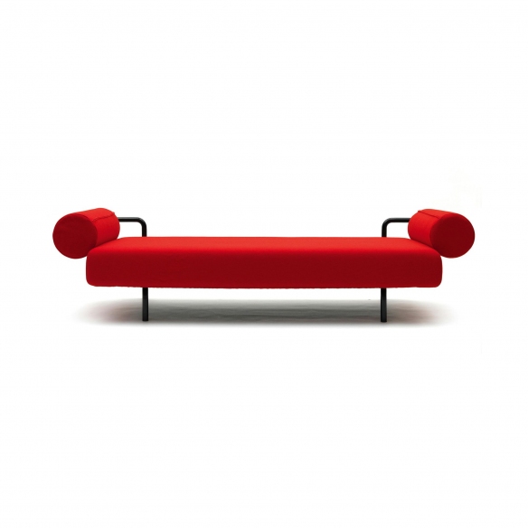 Nuvò single sofa bed made with enamelled metal structure and padding in polyurethane foam and polyester wadding. Completely removable covers in a wide range of fabrics and colours, the single sofa bed revolutionises the concept of a convertible sofa. Nuvò stands out for its minimal and abstract design, a padded bench of surprising essentiality, without complex mechanisms, which easily transforms into a welcoming single bed. The two cylindrical cushions, inspired by the traditional "transin" of French beds, allow a double configuration: during the day as a seat with a small backrest, at night as a single bed with soft headboard and footboard. Its clean and essential line makes Nuvò a versatile piece of furniture that adapts perfectly to any space, while offering unparalleled comfort at the same time. Nuvò represents the essence of modern design, combining practicality, style and comfort that will make you fall in love at first sight. Designed by Paolo Imperatori for Campeggi.