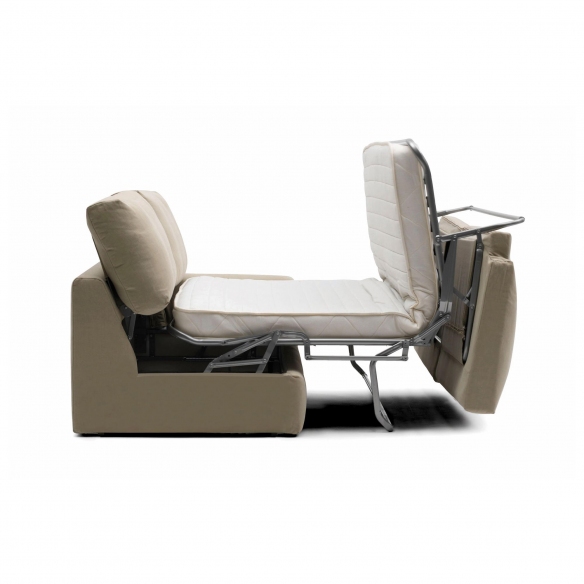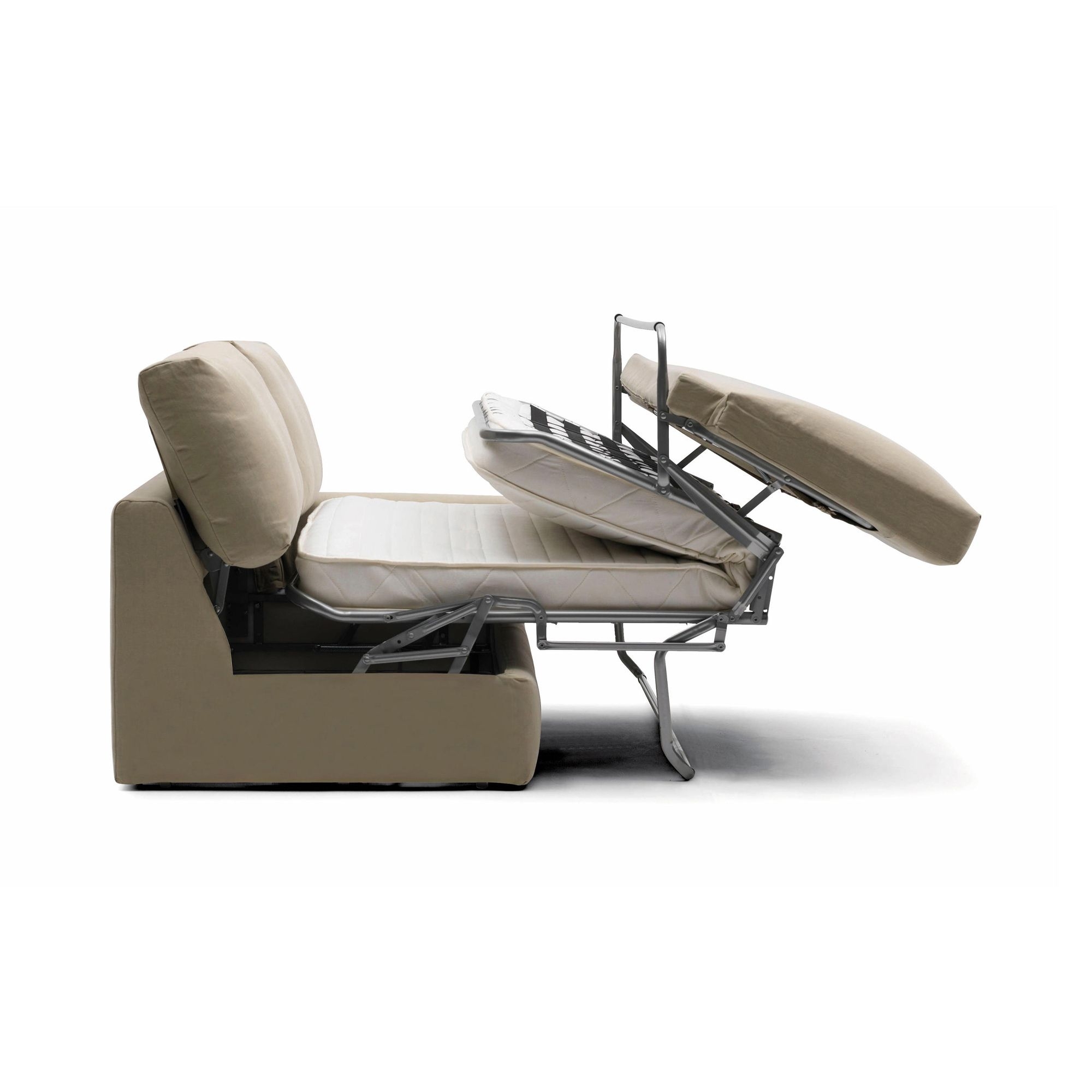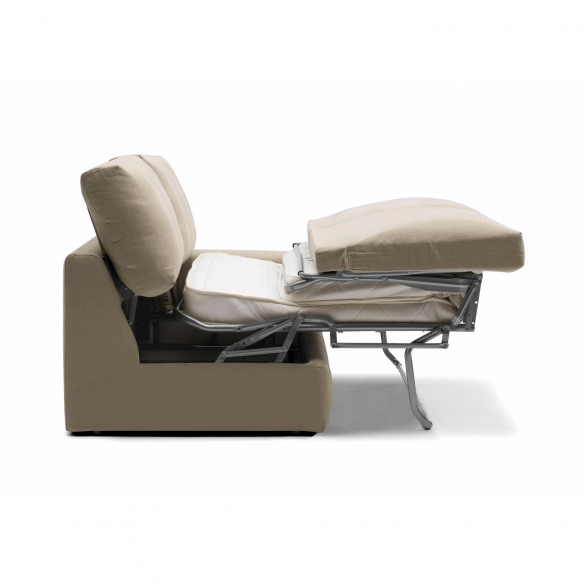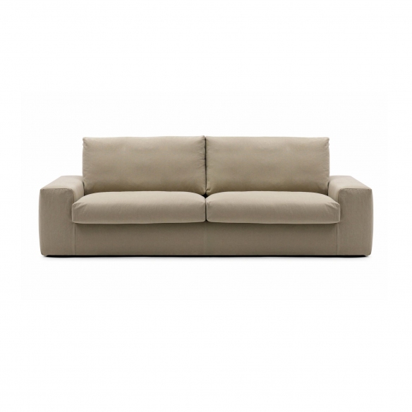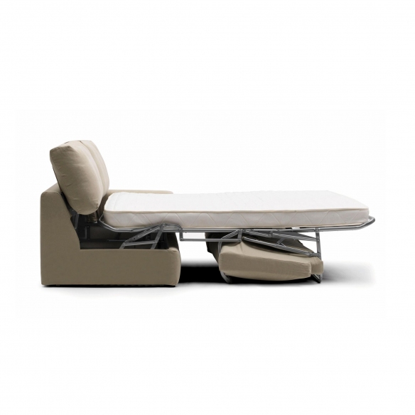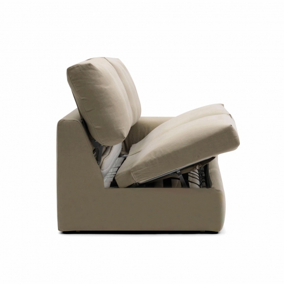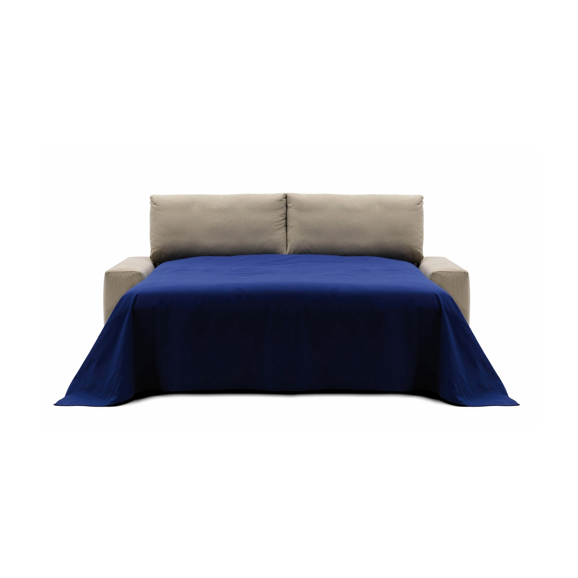 O.scià double sofa bed made with polyurethane foam and polyester wadding padding, backrest cushion in polyurethane foam particles and feathers and electro-welded steel sleeping support with spring mattress. Removable covers in a vast range of fabrics and colours, the O.scià sofa bed represents the pinnacle of elegance and versatility, an authentic design masterpiece that combines generous volumes and precise lines for a seat of absolute charm. Covered in fine full-grain leather, O.scià embodies excellence in the world of furniture, offering a timeless classic capable of adapting to and enhancing any environment with a distinct touch of class. This sofa bed not only enriches the space with its composed elegance, but also satisfies the need for functionality thanks to its surprising transformability. Equipped with an intuitive mechanism that allows it to be transformed into a double bed without removing the cushions, the O.scià sofa facilitates the transition from day to night, making it the ideal solution for those seeking a balance between hospitality, comfort and style. Its modularity offers various width configurations, adapting perfectly to space needs and dynamic modern life. With O.scià, home furnishings are elevated to a symbol of refinement and practicality. Perfect for enjoying moments of relaxation during the day and night, this sofa bed is intended for those who appreciate the value of designer design and do not want compromises between beauty and functionality. Dress up your spaces with O.scià and transform every environment into a testimony of accessible luxury and innovative comfort. Made by Campeggi.