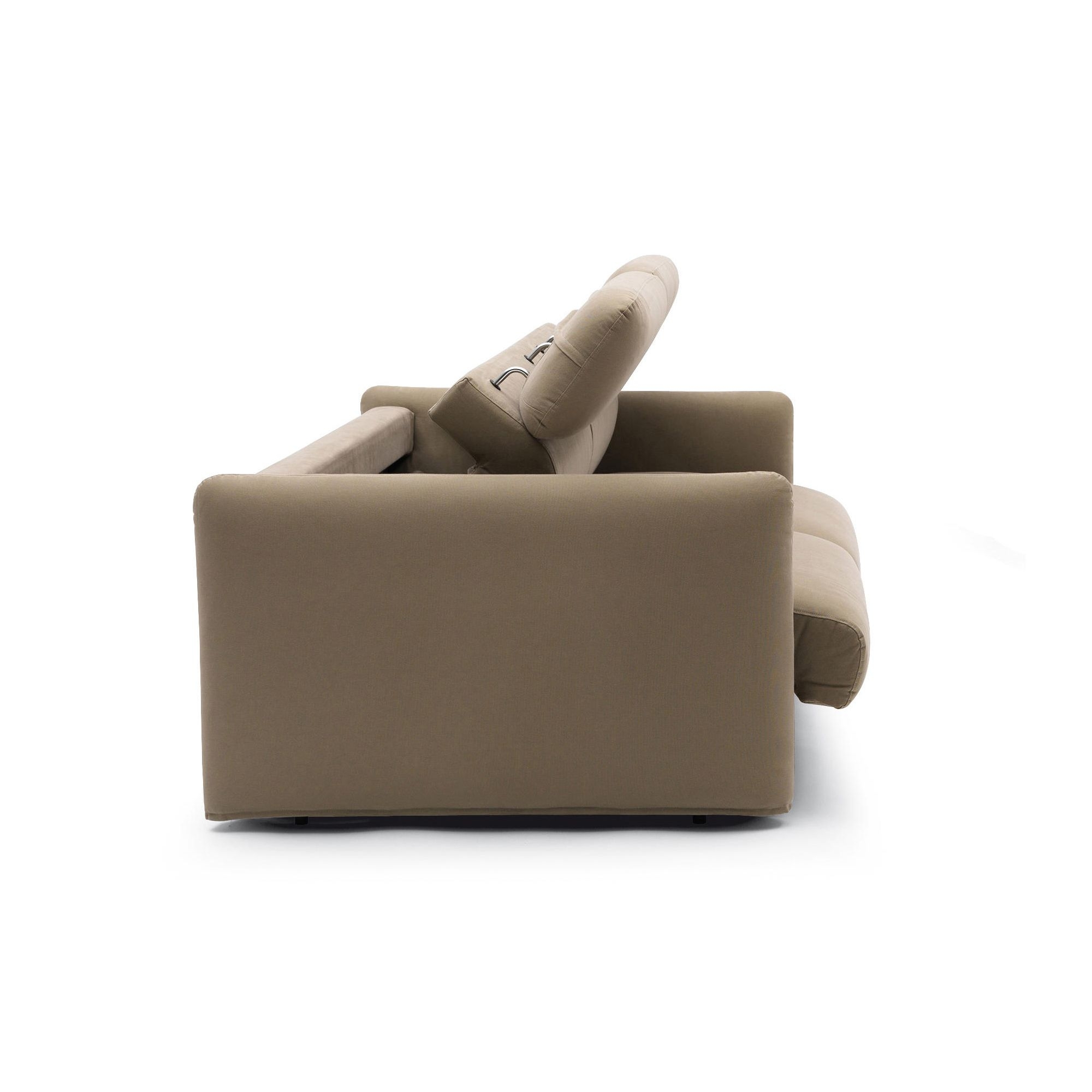 Shell large double sofa bed made with polyurethane padding, sleeping support with anti-sagging stratified beech slats and CFC-free polyurethane foam or spring mattress. With removable covers in multiple fabrics and colours, the Shell sofa bed transforms any space with its seat designed to offer the right rigidity and resist over time, and a bed that can be easily extended without removing the cushions. The "night version" of the Shell guarantees exceptional comfort thanks also to the two reclining cushions that can be customized in different positions and independent of each other, ideal for those who want optimal support for the head. Available in two, three or three maxi seater sizes, Shell is perfect for adapting to all space and style needs, always maintaining a high quality of design and comfort. Enter our page and let yourself be won over by the versatility and comfort of the Shell sofa bed, the perfect solution for your living room, ready to welcome you at any moment of the day. Made by Campeggi.