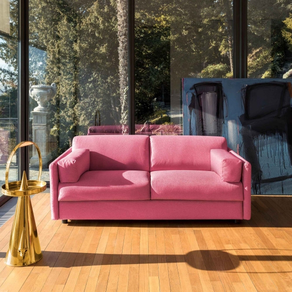 Soft double sofa bed made with wooden structure, electro-welded steel mesh mechanism with expanded polyurethane mattress. With removable covers in a wide range of fabrics and colours, the Soft sofa bed was created to harmonize with the space without overwhelming it, presenting itself as a masterpiece of functionality and style. The balanced but decisive shape of the Soft makes it a piece of furniture suitable for any type of setting, from the most classic to the contemporary. Its solid wooden structure guarantees reliability and durability, while the electro-welded steel mesh mechanism, combined with a polyurethane foam mattress, promises superlative comfort both when sitting and sleeping. Every detail of Soft has been designed with care: from the completely removable cover, available in a wide range of fabrics and colors to adapt to any aesthetic palate, up to its easy transformation which makes it an optimal solution for those looking for a multifunctional piece of furniture that you don't sacrifice style or comfort. Made by Campeggi.