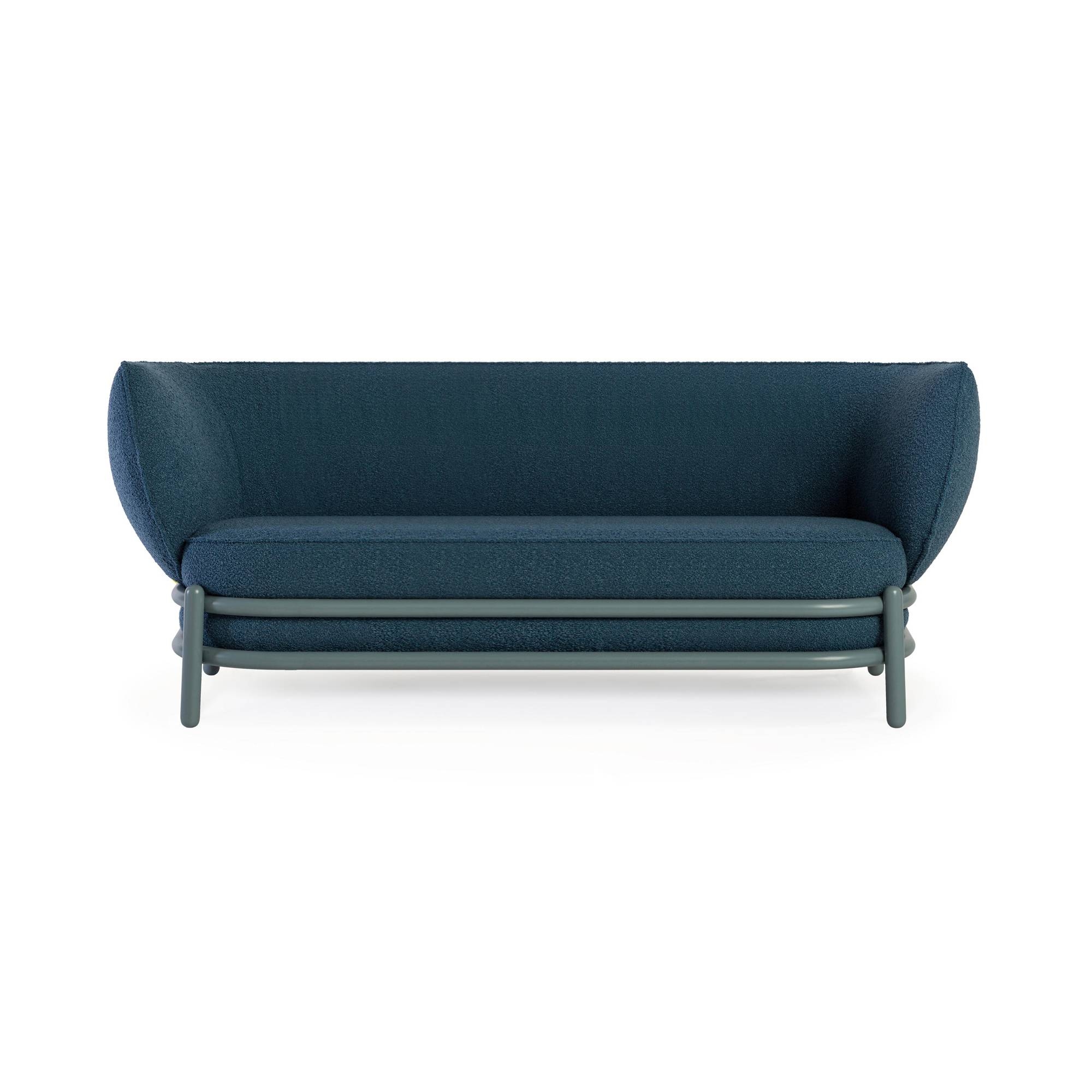 Luftballon two-seater sofa with solid and supporting structure in curved beech wood, large and comfortable seat and back cushions in memory foam with fire-retardant polyurethane foam padding in different densities and covering in acrylic fiber layers and characterized by a modern and playful but perfect for those who love complete relaxation thanks to the high backrest ready to envelop you like in a hug. Designed by Valter Cagna for Wiener GTV Design.