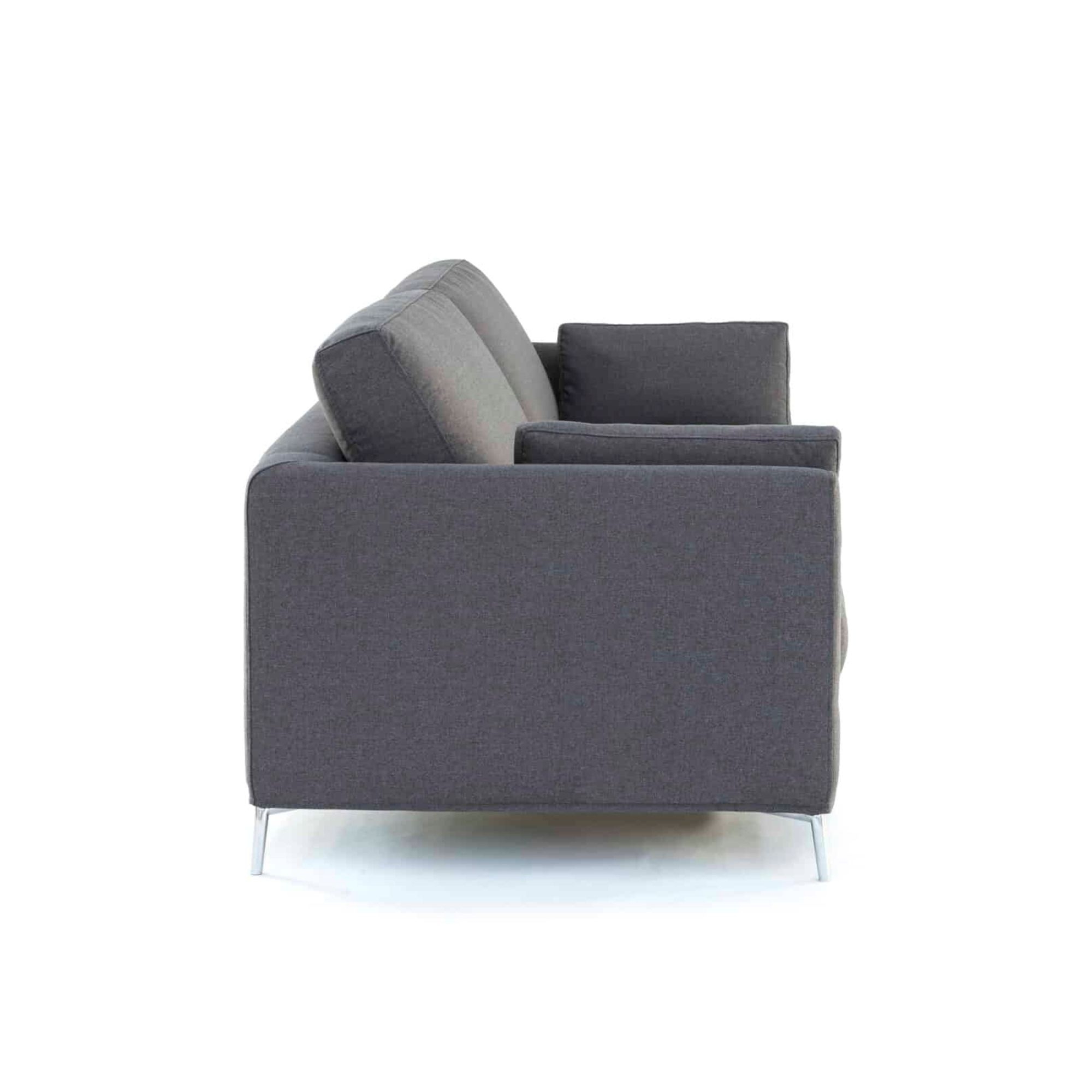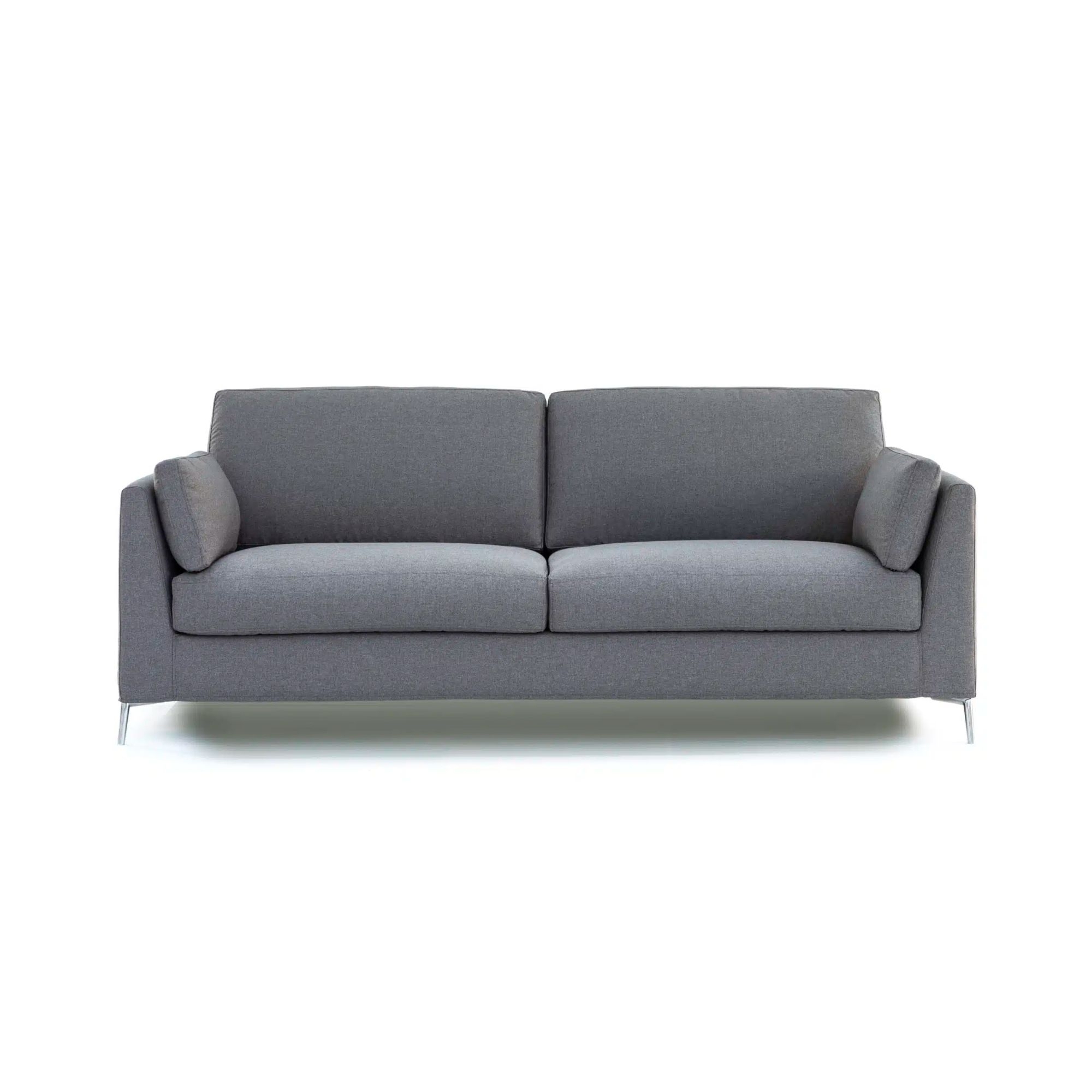 The large double sofa bed Giù, measuring 160x195 cm, is crafted with satin aluminum legs and upholstered in a variety of fabrics and colors. For those who seek comfort without compromising on design, the Giù double sofa bed stands out as the perfect choice. With its structure supported by satin aluminum legs, Giù embodies a simple yet elegant aesthetic, capturing the essence of contemporary minimalism. Special attention to detail and the selection of high-quality materials emphasize the clean and timeless style of the sofa, making it a suitable furnishing complement for any environment. Giù’s transformation into a comfortable double bed further distinguishes it: with just a few simple moves, it shifts from a sophisticated sofa to a cozy nighttime solution. This metamorphosis in no way compromises comfort; on the contrary, sleeping on Giù is comparable to the restful experience offered by a real bed, thanks to its generously padded surface and ergonomic support designed to ensure the utmost comfort throughout the night. Versatile and functional in design, the Giù sofa bed is a smart solution for optimizing space without sacrificing style or well-being. It meets the needs of those looking to enhance their home with a piece of furniture that is both aesthetically pleasing and practical, capable of transforming any environment into a welcoming and trendy space.