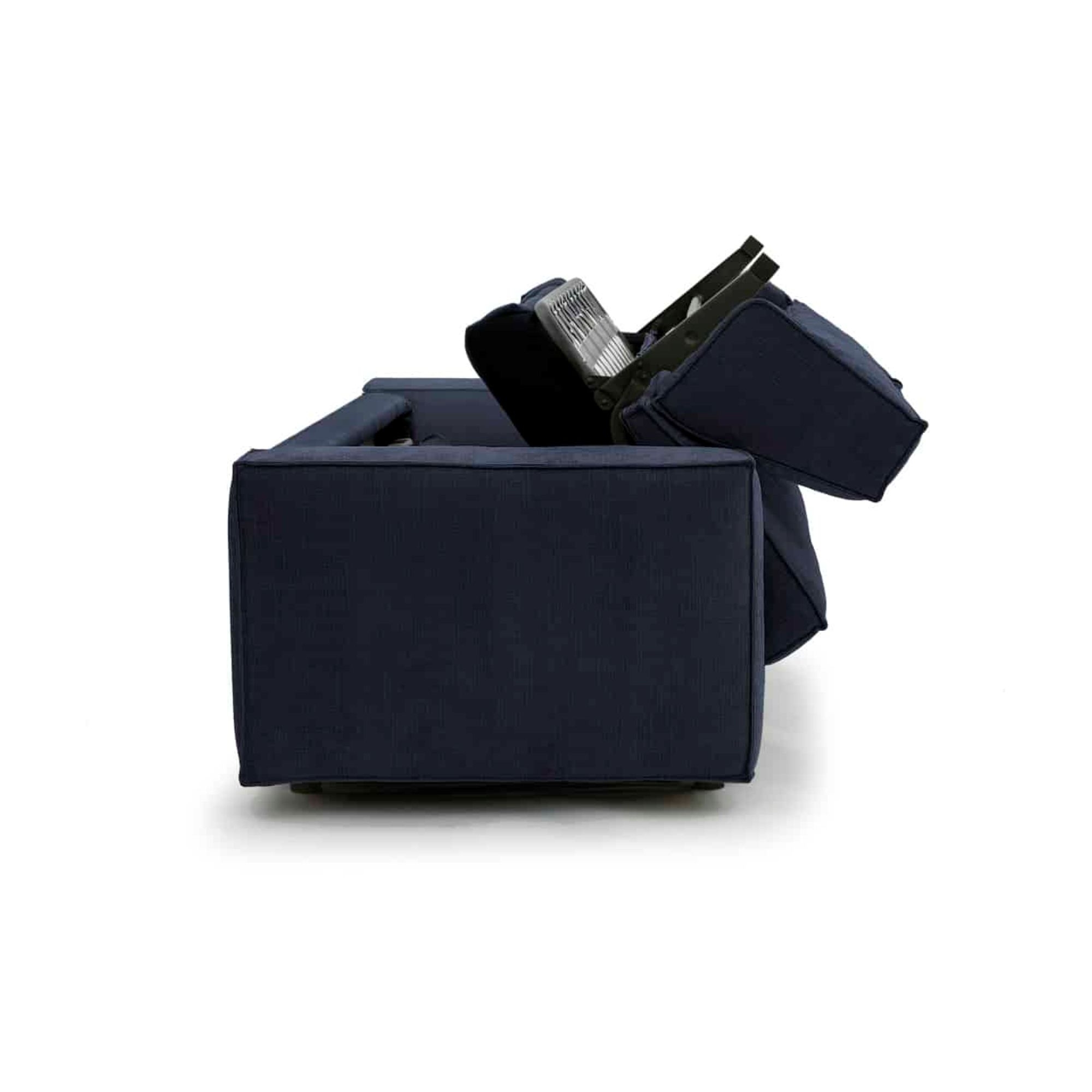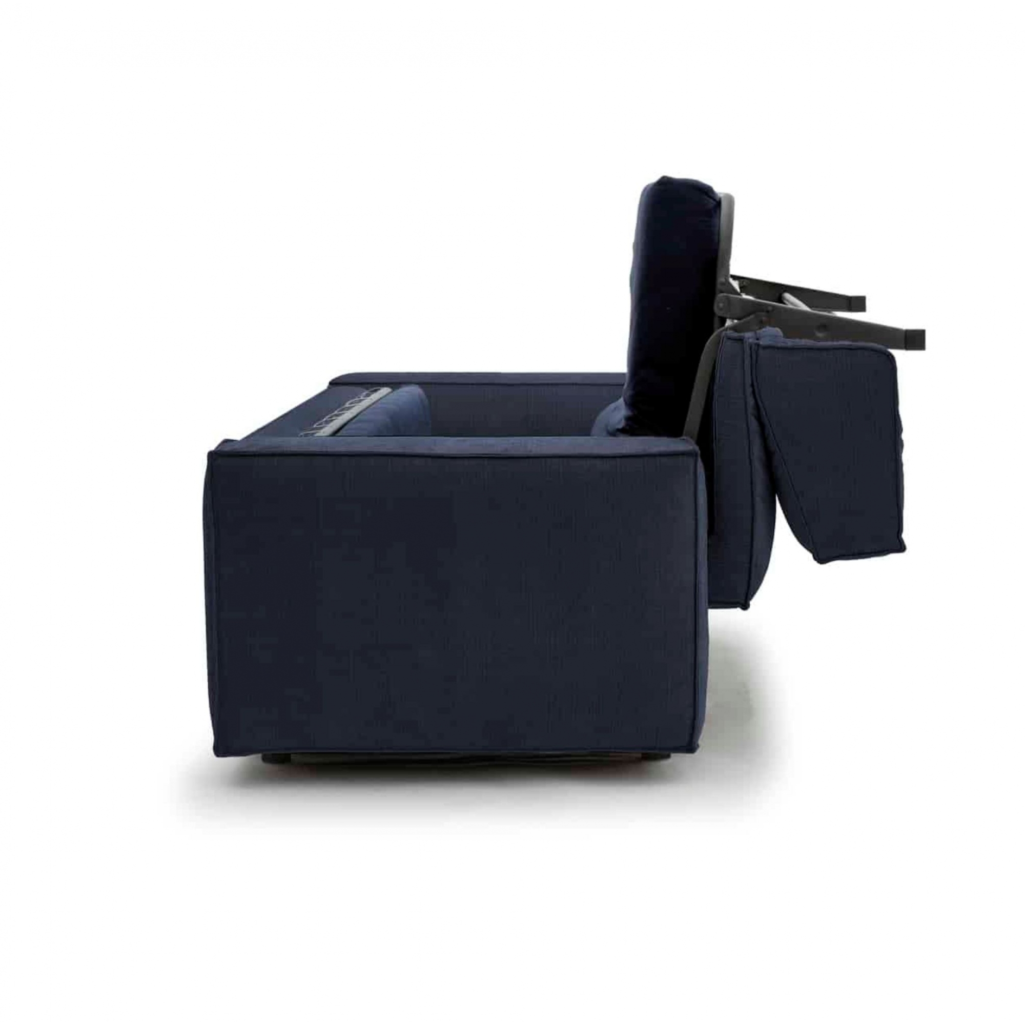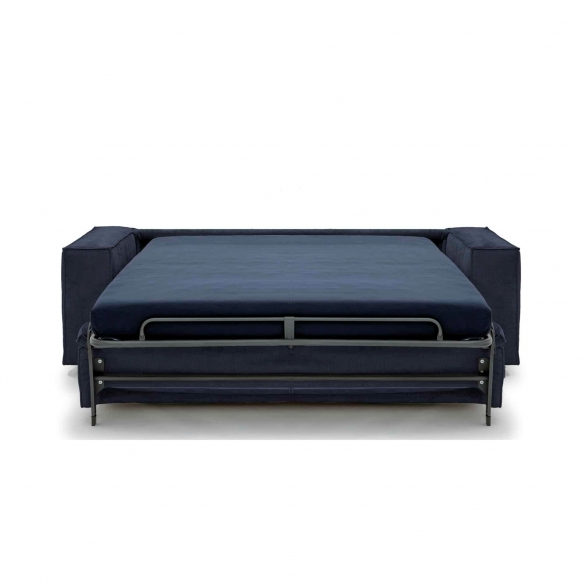 The Pit small double sofa bed, sized 140x200 cm, features a painted aluminum structure, seat padded with polyurethane foam, and upholstery available in various fabrics and colors. The Pit double sofa bed stands out for its design excellence and functionality. With its clean lines and elegant finishes, it naturally fits into any living environment, bringing a touch of elegance. Versatility lies at the heart of Pit: its modular structure can be adapted to different spaces and needs, making it a standout piece in modern furnishings. Its welcoming appearance hides a remarkable transformability: with a simple gesture, Pit converts into a comfortable double bed, equipped with a 19 cm high mattress that ensures optimal rest. Perfect for those looking for a solution that combines style, comfort, and practicality, Pit is the ideal ally in both daily routines and guest accommodation, ensuring quality rest without compromising on aesthetics. Choosing the Pit sofa bed means opting for furniture that knows how to be discreet yet impressive, capable of transforming any space with a perfect balance between beauty and function.
