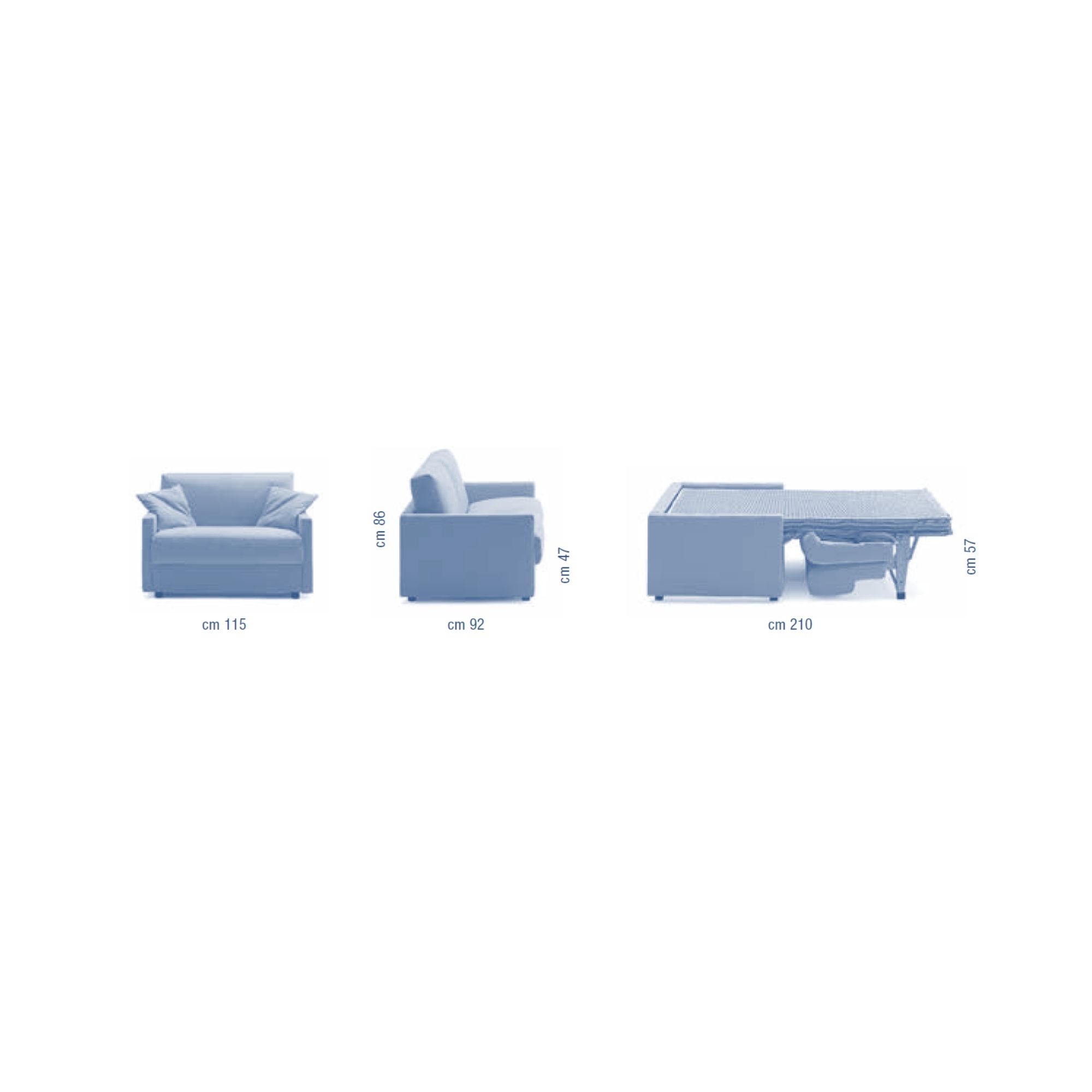 The Go Small queen size sofa bed is an interesting and sophisticated piece of furniture made by Campeggi with a steel structure that guarantees durability and sturdiness even if used frequently. This two-seater sofa is available in various finishes, making it customizable to any setting, whether it has a classic, minimalist, avant-garde, casual design: in fact, Go Small can be placed inside a living room, a home or commercial office, inside a waiting room or in the bedroom, becoming the protagonist. By choosing materials and production processes that minimize the impact on the environment, Campeggi demonstrates commitment and attention to the well-being of both our planet and the user. Its dimensions have been designed to offer maximum comfort without neglecting the aesthetic aspect; the materials used have been carefully selected to ensure longevity and resistance, making the sofa an investment choice for your home or your study. The cushions of this fabulous Go Small sofa ensure a unique and welcoming rest experience, therefore ideal for moments of relaxation, reading or conversation. The Go Small sofa bed is a marvel of modern design, a true fusion of elegance, functionality and innovation. Designed and engineered by Campeggi.