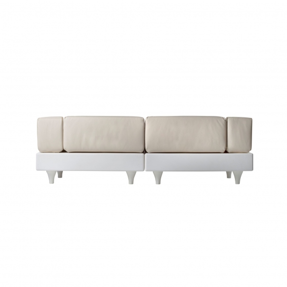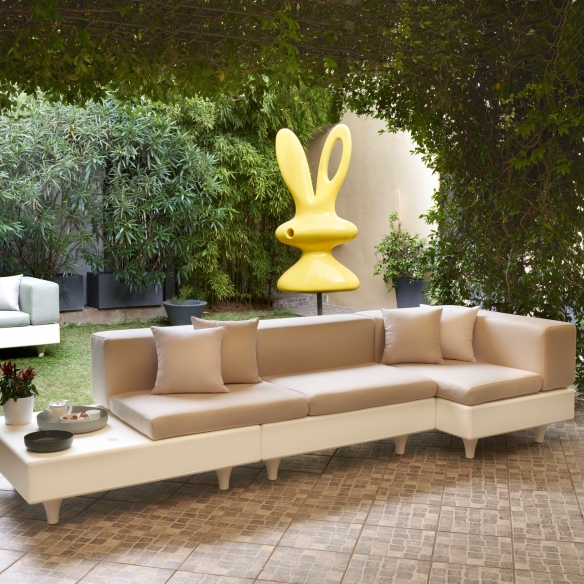 The Happylife 3-seater outdoor sofa is a delightful and elegant masterpiece of design crafted by Slide in polyethylene, a material revered for its durability, longevity, and versatility. This three-seater sofa is inspired by the classic 19th-century daybed and has been designed to optimally and uniquely occupy space with its versatile and geometric structure: depending on the user's needs, it can serve as a comfortable support surface, or, by adding soft faux leather or waterproof fabric cushions, it becomes a proper sofa. Thanks to its minimalist and essential design and its wide range of available colors, the sofa can harmoniously match any type of setting, whether indoor or outdoor: from a spacious modern terrace to a traditional living room, from a garden with a swimming pool to a dining room, adding brightness and class to any space. The Happylife 3-seater outdoor sofa by Slide represents a furnishing solution that makes a significant visual and practical impact, capable of transforming every corner, both inside and outside, into an oasis of relaxation and style. The design is by Bedini, Marzano, and Settimelli for Slide.