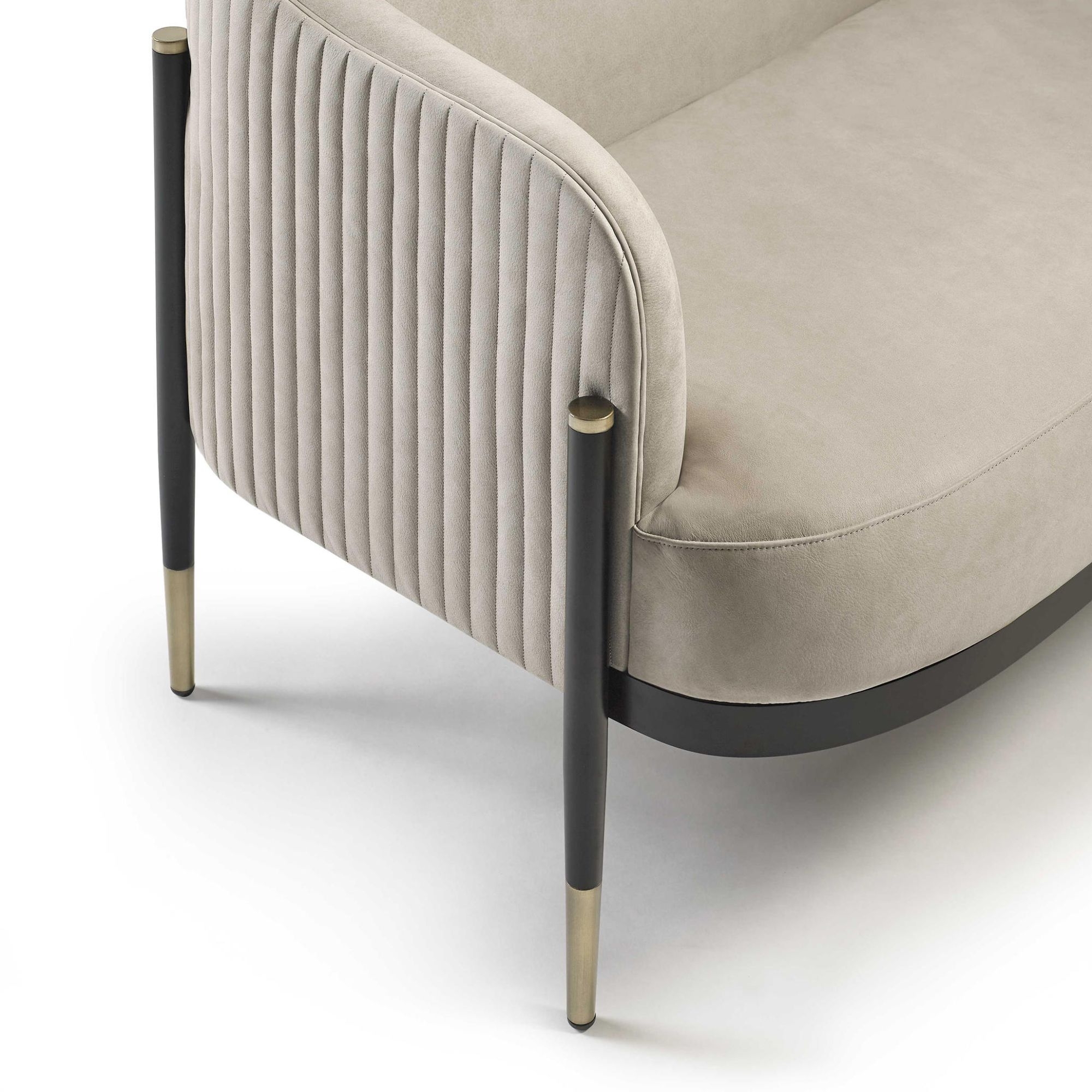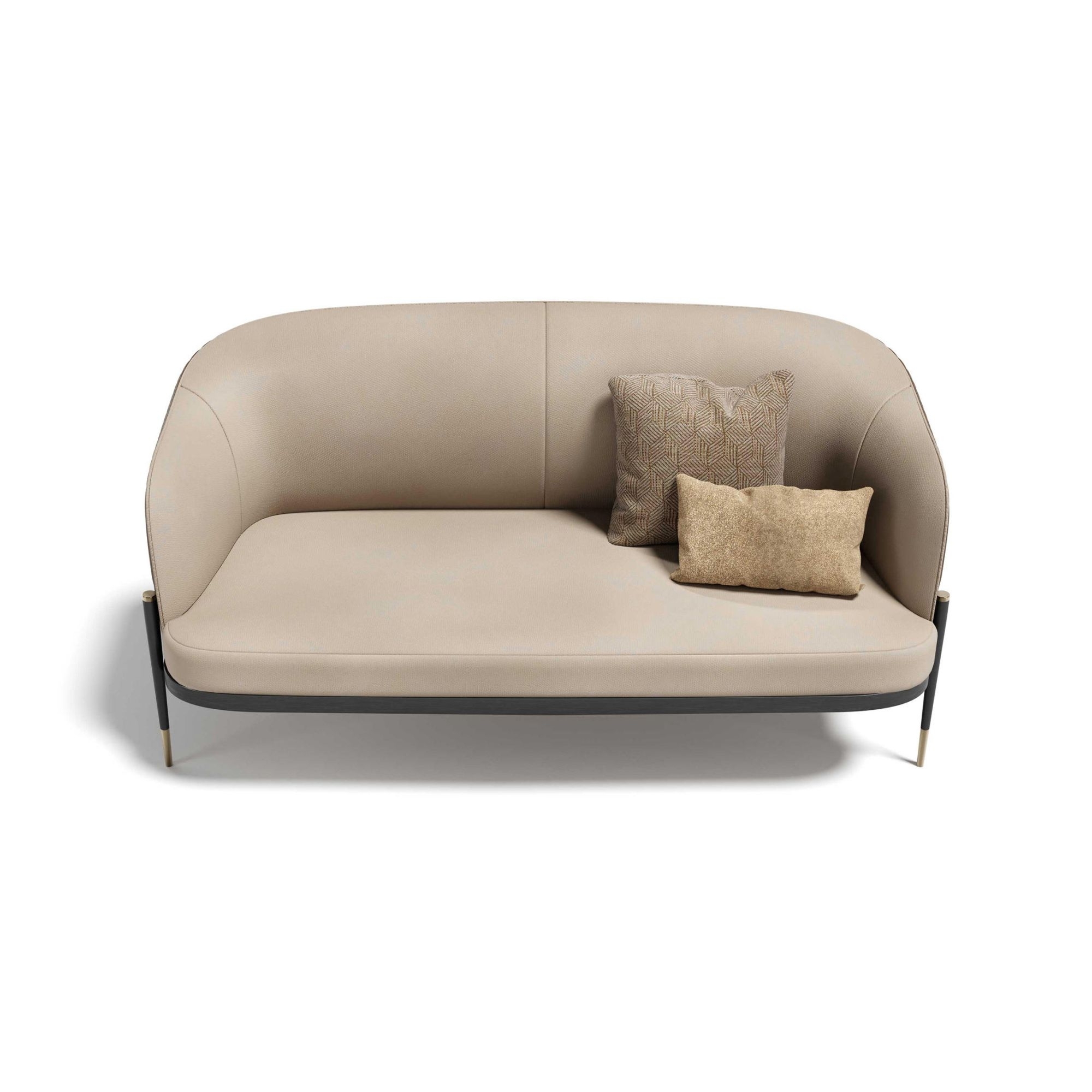 The Oxford 2-seater sofa is a modern design masterpiece that blurs the lines between art and functionality, made by Capital with a wooden structure, variable density foam padding, conical legs with metallic finish cups, and a metallic front profile. This fabulous sofa, available in numerous combinations, can match any setting and type of decor: whether placed in a modern living room, a professional/commercial space such as offices or the lobbies of elegant hotels, or in a den, Oxford adds that touch of luxury that should never be missing. With its simple and unmatched lines, Oxford becomes the living space's focal point for its iconic personality with fresh aesthetic accents. With this fantastic Oxford 2-seater sofa, Capital reaffirms its commitment to creating furniture that not only completes the aesthetics of a home but also enhances the quality of everyday life. Designed by Boatto Martino Studio.