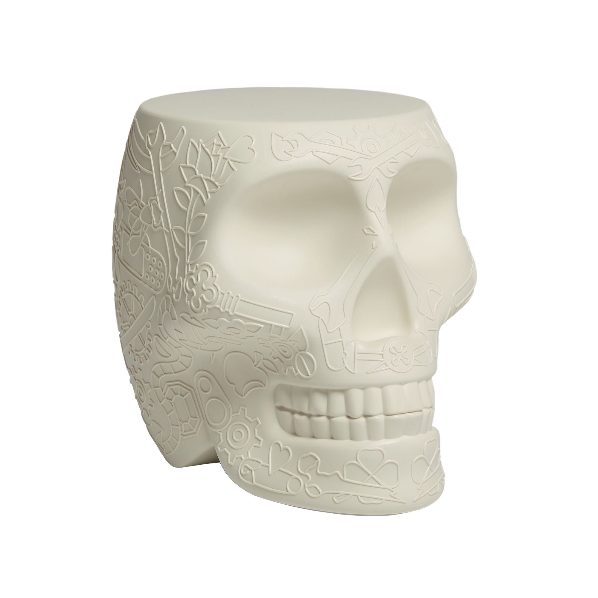 The Mexico Stool/side table is a fantastic piece of furniture created by Qeeboo entirely from recyclable polyethylene, assuring durability, longevity, and easy maintenance. The Mexico Stool/side table is available in four beautiful combinations: black, ivory, terracotta, and balsam green, making it ideal for seamlessly blending into any setting, especially spaces with avant-garde design; whether it’s a minimalist living room or a modern terrace, the Mexico Stool/side table will become the centerpiece of conversations among friends and relatives, and will always capture the attention of your guests. Moreover, the Mexico Stool/side table has a versatile nature: it can serve both as additional seating, ensured by its softness and comfort, and as a side table, providing a surface for placing various items such as books, beverages, or flower/plant vases. Designed by Studio Job for Qeeboo.