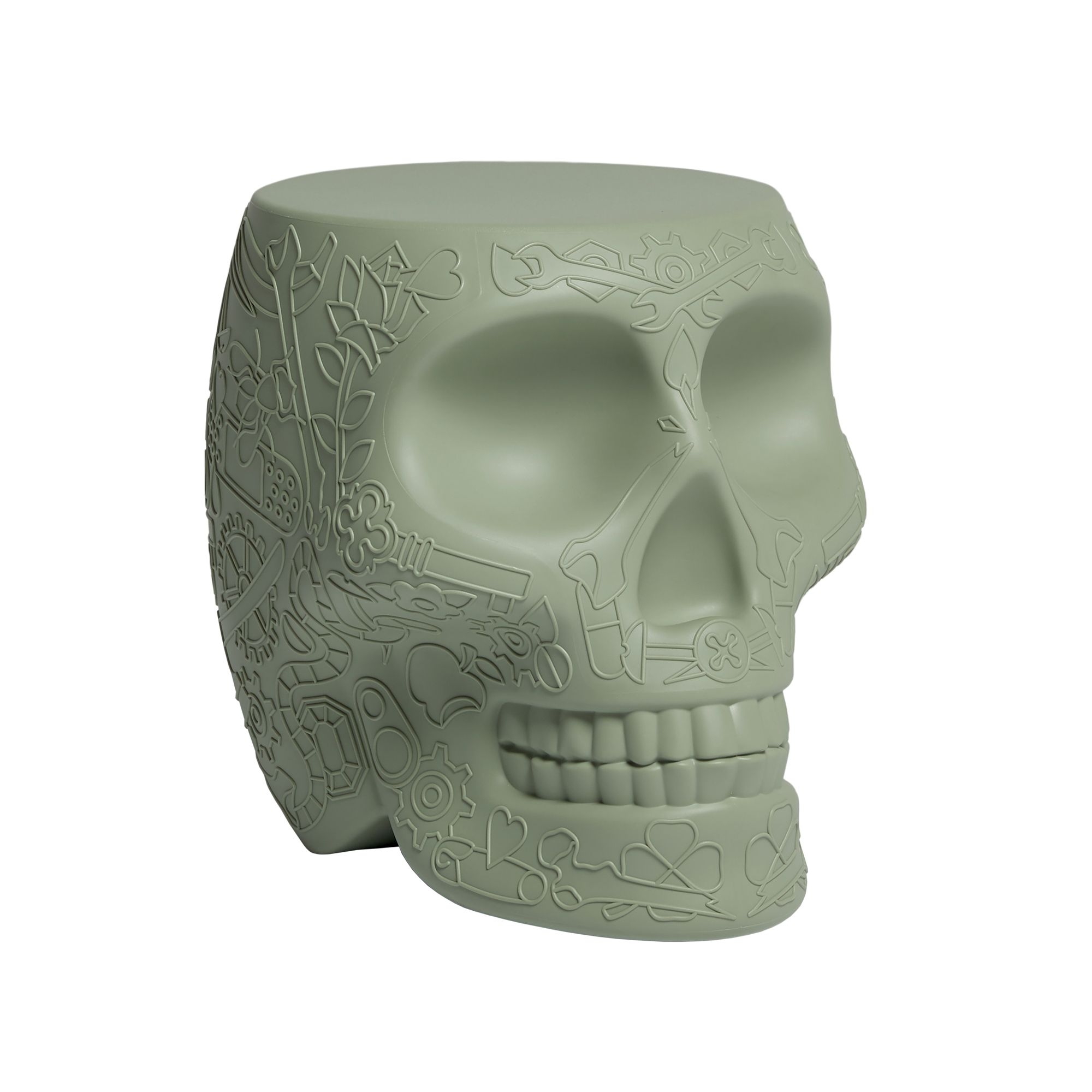 The Mexico Stool/side table is a fantastic piece of furniture created by Qeeboo entirely from recyclable polyethylene, assuring durability, longevity, and easy maintenance. The Mexico Stool/side table is available in four beautiful combinations: black, ivory, terracotta, and balsam green, making it ideal for seamlessly blending into any setting, especially spaces with avant-garde design; whether it’s a minimalist living room or a modern terrace, the Mexico Stool/side table will become the centerpiece of conversations among friends and relatives, and will always capture the attention of your guests. Moreover, the Mexico Stool/side table has a versatile nature: it can serve both as additional seating, ensured by its softness and comfort, and as a side table, providing a surface for placing various items such as books, beverages, or flower/plant vases. Designed by Studio Job for Qeeboo.