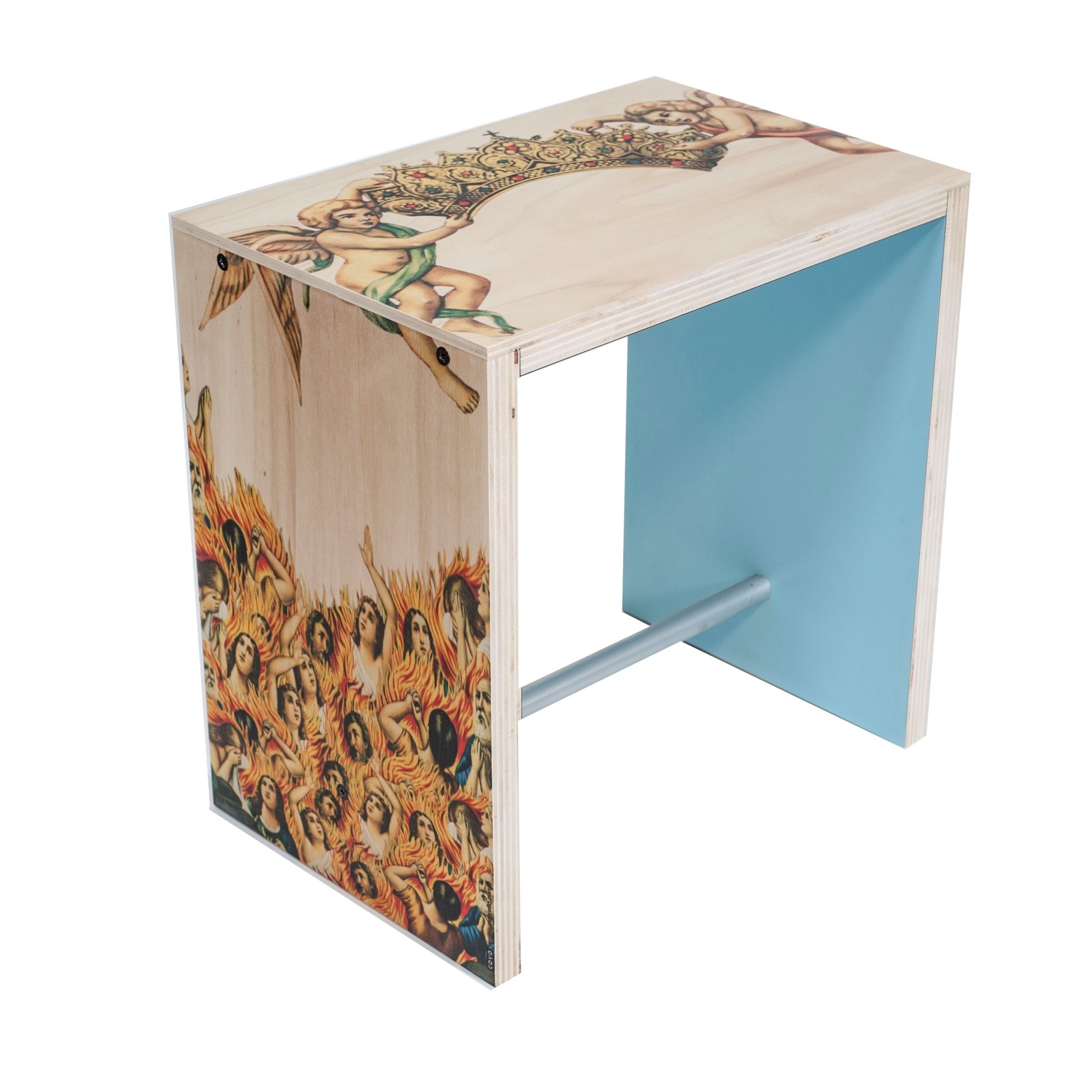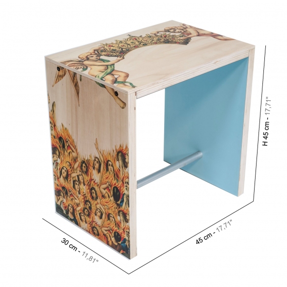Nordico Verace stool (h 45 cm) made of silk-screened wood. Available in 14 different decorative patterns, the Nordico Verace stool brings liveliness and culture to your space, stimulating sensations and creating an enveloping environment full of personality. Inspired by the popular tradition of the most ancient South, this stool is not just a piece of furniture, but an element that tells a story. Nordico Verace evokes a simple and primitive stool archetype. Its gentle shape offers a minimalist design that revives the charm and functionality of a simple but fundamental piece of furniture. Thanks to its compact dimensions, the Nordico Verace stool can be easily inserted into different contexts. It can work perfectly as an extra seat in the living room area, as a decorative element in a study or even as a piece of furniture for your bedroom. Designed by Marcello Panza for Covo.