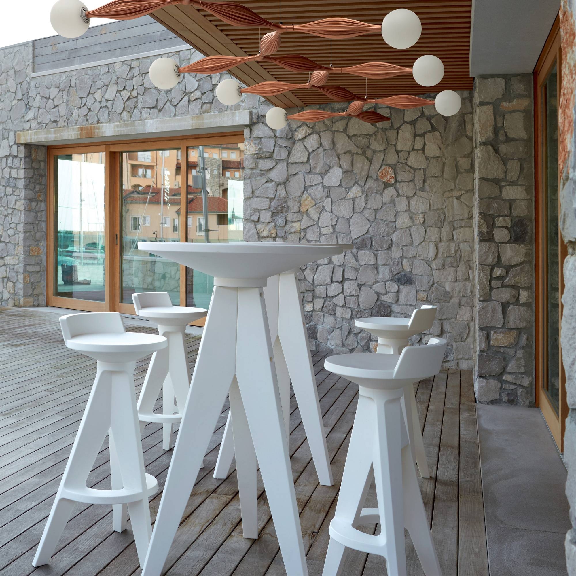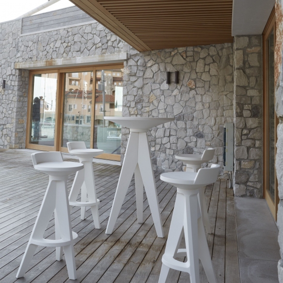 Fabulously functional, My Your's new Oxford collection celebrates simplicity with a charmingly minimalist aesthetic. Consisting of a high table and a stool, this collection is synonymous with clean and linear design that adapts naturally to any space. The high table, with its slim but stable structure, is an imposing landmark that defines the space while maintaining a low profile thanks to its clean design. This table serves as an ideal place to place drinks or as a work surface, giving any space a sense of contemporary functionality. The stool, another element of the collection, reflects the same clear and minimalist lines as the table. Despite its lightweight structure, the stool offers optimal comfort, ensuring comfortable furnishings. It can also function as an additional side table or as a base for decorations, demonstrating its versatility. Suitable for both internal and external use, the elements of the Oxford collection are very versatile. Whether you're looking to furnish a stylish outdoor space or want to update a domestic or commercial interior, this collection offers a broad spectrum of design possibilities. Each piece is made from durable UV-resistant polyethylene (Poleasy), ensuring the Oxford collection remains fresh and stylish for years to come.