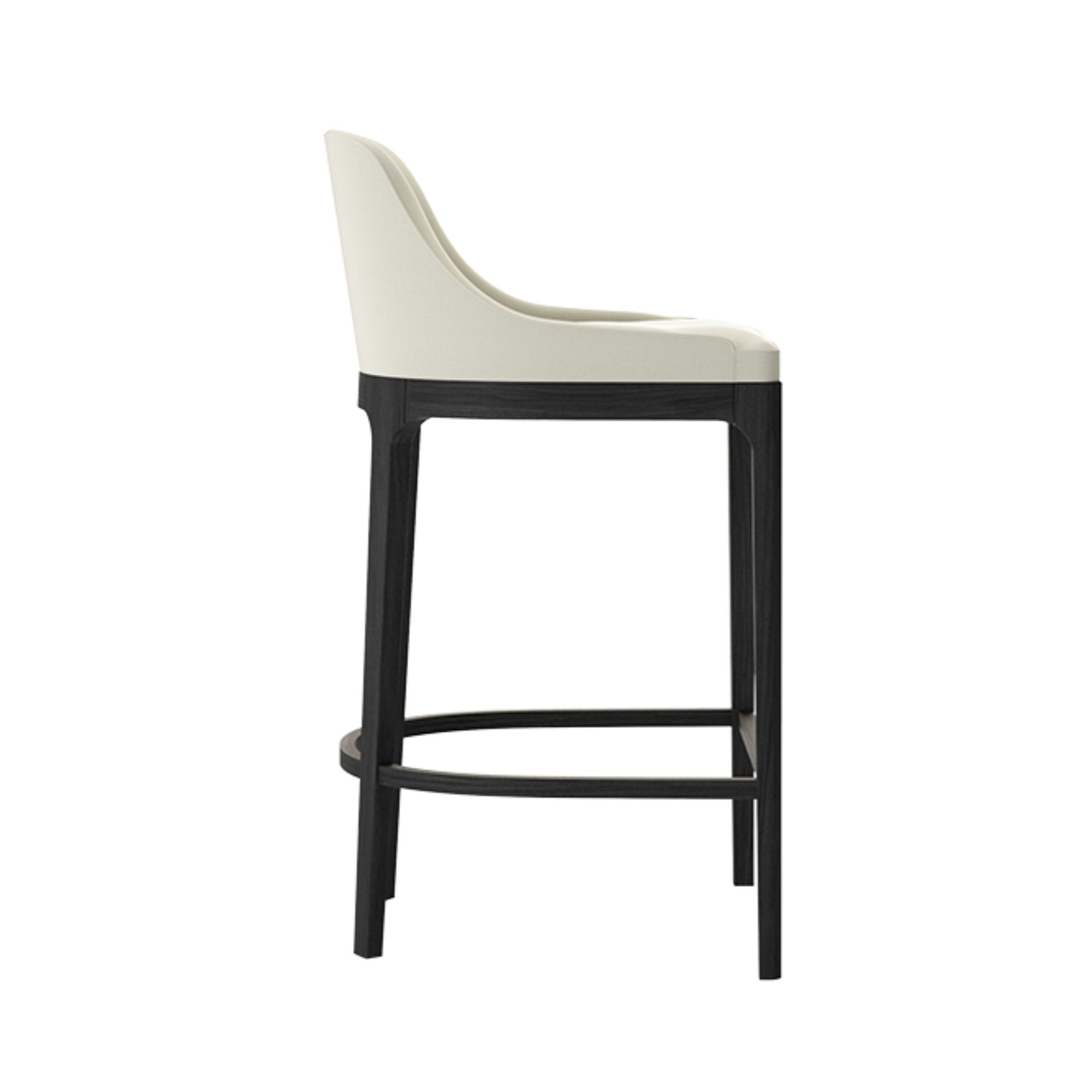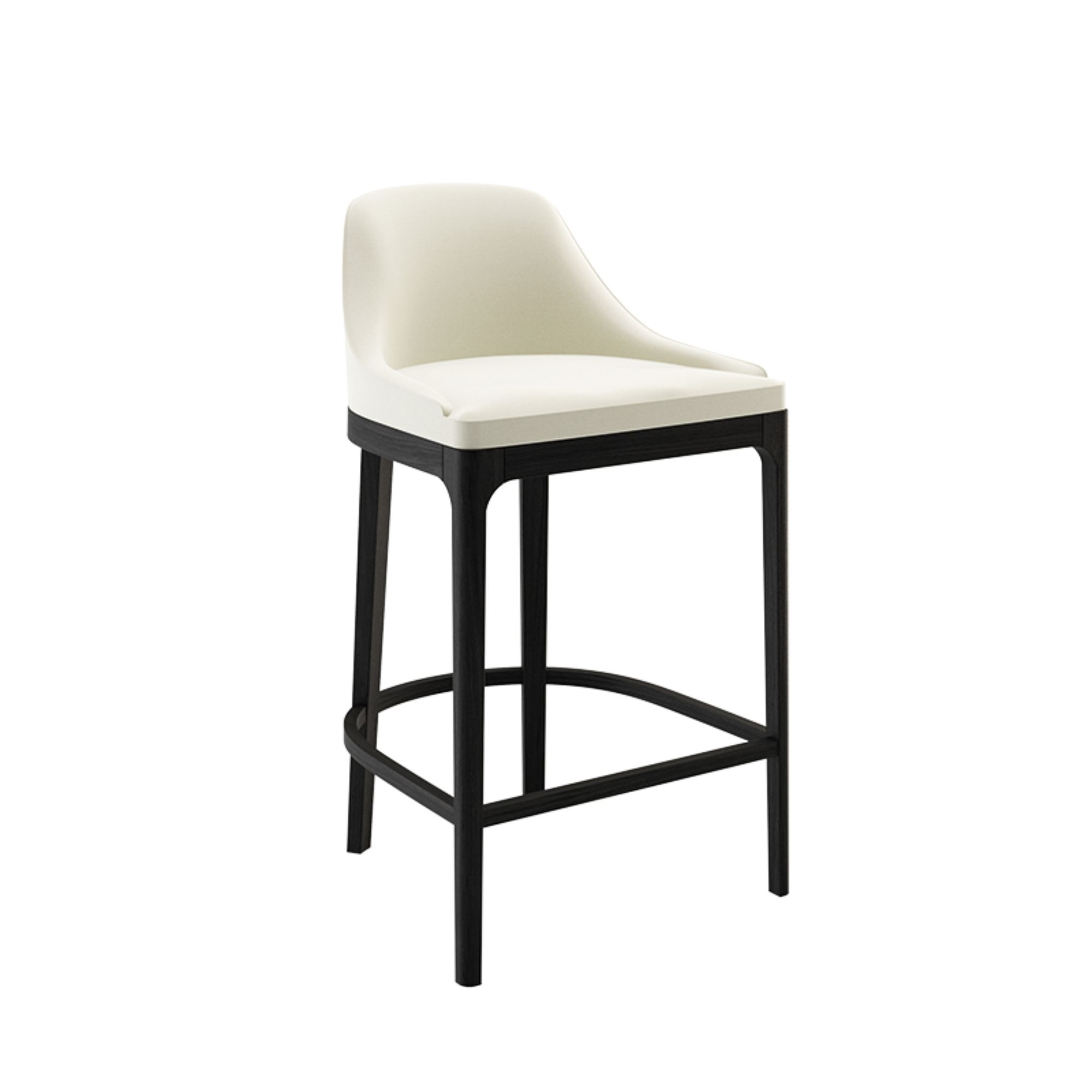 Tiziano stool crafted with an internal structure in shaped multilayer wood, upholstered in fabric, faux leather, or leather. Solid beech wood base painted in various finishes. Polyethylene feet. The Tiziano stool represents the excellence of Italian design and craftsmanship, combining elegance and functionality in a single product. With a clean and simple, yet extremely refined design, this stool stands out for its slightly curved backrest, made of fine wood, which provides a comfortable support, upholstered and padded in high-quality leather or fabric of choice. This feature not only ensures superior comfort but also adds a touch of class to any environment, making it ideal for both home and commercial spaces. The light, yet sturdy structure demonstrates Italian craftsmanship with attention to detail and durability. The Tiziano stool is a perfect choice for those looking for timeless furniture, combining the harmony of an attractive design with the quality and tradition of Made in Italy. Perfect as a furnishing complement in modern kitchens, elegant bars, or as a distinctive element in design offices. This stool is not just a piece of furniture, but a work of art that carries the values of Italian artisanal excellence. Designed by Marco Piva for BBB Italia.