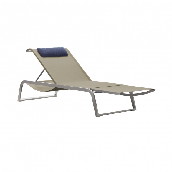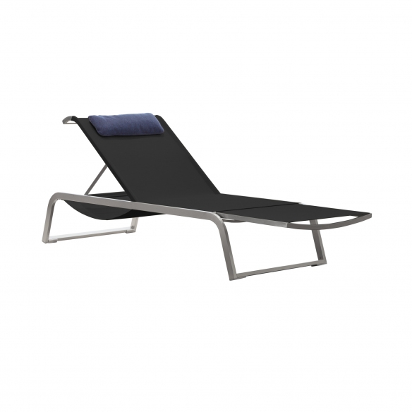 A sunlounger with seat, backrest and footrest in Sun or Batyline® fabric. An adjustable backrest and extendable, sliding and retractable footrest. It also has a rear pocket for objects and a sun visor. Perfect for placing it by the pool, directly on the beach or even in your garden. Designed by Sergio Brioschi for Coro.