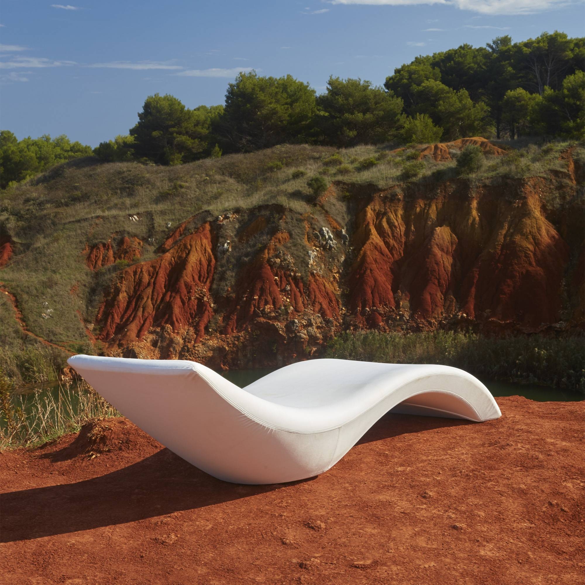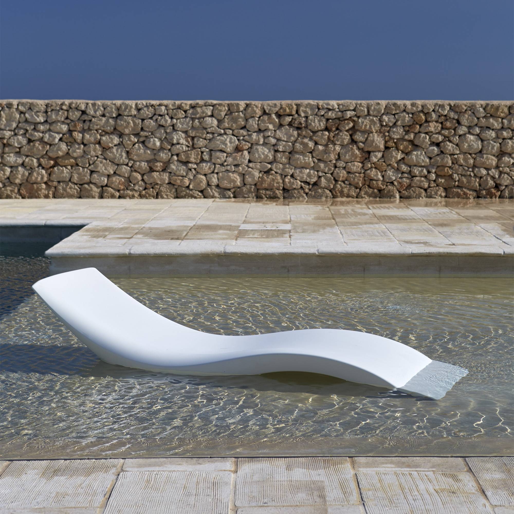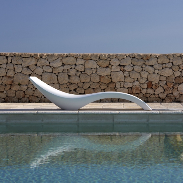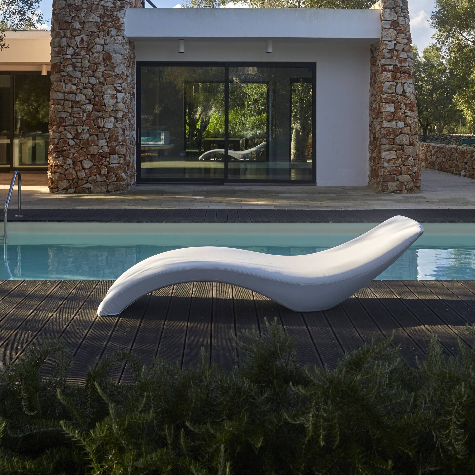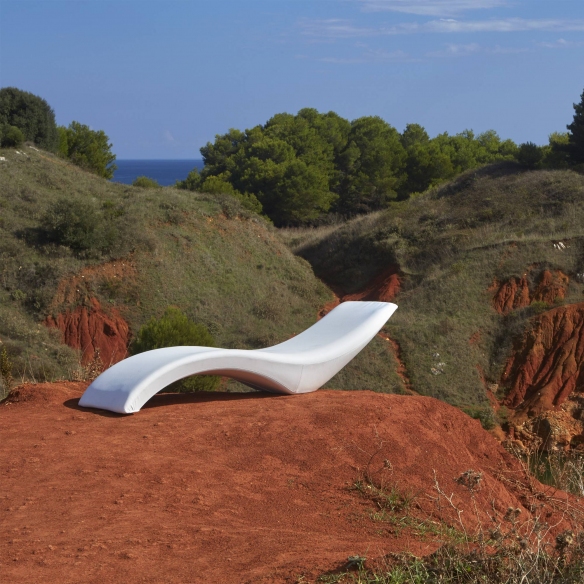Cloe outdoor reclining sunbed made of sturdy polyethylene (Poleasy). An absolute icon of design and comfort, the Cloe sunbed with soft and enveloping curves promises an unparalleled relaxation experience. Its name, which means "young" and "fresh", perfectly reflects its unique and sculptural design that brings a touch of freshness and elegance to any space. Designed by MoreDesign for My Your.