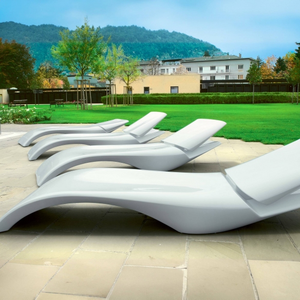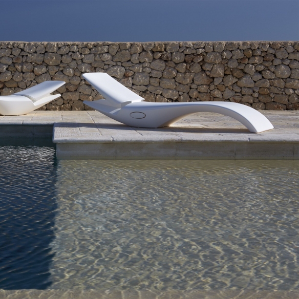 Zoe outdoor reclining sunbed made of sturdy polyethylene (Poleasy). A natural evolution of the Cloe model, Zoe stands out for its reclining backrest, easily operated via a button, which guarantees superior comfort. The excellent attention to detail translates into a further improved sleeping experience, while the design integrates harmoniously thanks to the use of sophisticated regulation systems. Designed by MoreDesign for My Your.