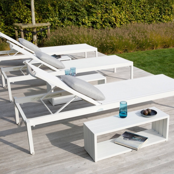 The Alexa lounger incorporates high-quality materials, such as aluminum and Textilene fabric (reliable for garden furniture), ensuring resistance to weather changes and extended comfort. Alexa, thanks to its durable and lightweight aluminum frame, proves to be an excellent solution for anyone seeking a lounger with the utmost durability and ease of movement. The outdoor Alexa lounger has a simple design with clean, minimalist lines, perfect for any outdoor environment like a terrace or garden beside the pool, adding a touch of elegance to empty spaces. Textilene fabric has been selected for its resistance to UV rays, rain, and humidity, maintaining its color and shape over time. Moreover, the lounger is easily adjustable in height, facilitating maximum comfort. Alexa becomes a favored choice for those wishing to enhance their outdoor space experience; whether it's used for sunbathing, reading a book, or simply chatting outdoors with friends, the Alexa lounger promises to meet all users' comfort needs.