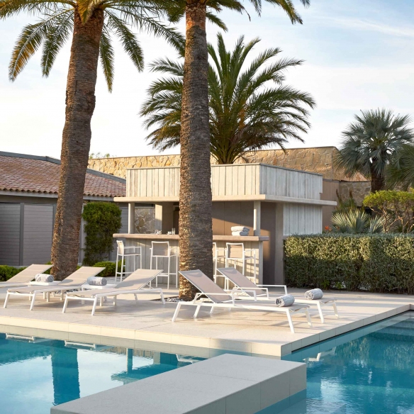 The Selecta lounger with armrests features a robust structure made of top-quality powder-coated aluminum and Batyline fabric that makes it soft and comfortable. The Selecta lounger is available in three magnificent colors, making it ideal for any type of outdoor setting, from the most classic terraces to the most modern and avant-garde gardens, adding a touch of delicacy needed in every home. Thanks to the choice of unique and quality materials, the Selecta lounger with arm is resistant to UV rays, rain, and humidity, therefore offering an ideal solution for outdoor use. Furthermore, Selecta features an adjustable backrest, allowing you to find the perfect position for every relaxation moment; from an upright seat for reading a book to a fully reclined position for sunbathing. A special characteristic of this wonderful jewel is that it is stackable, designed in such a way that it can be stacked on top of other loungers to save space. TheSelecta lounger with arm is not just a sun lounger, but a true symbol of luxury and comfort.