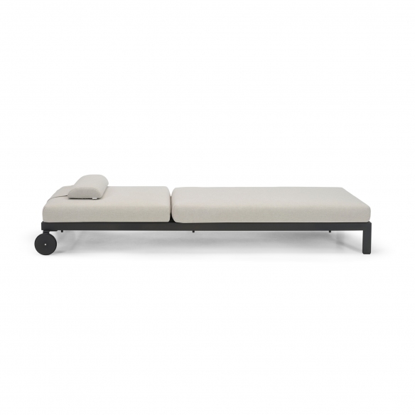 The Cubic lounger with cushion is a true masterpiece designed to withstand the weather, thanks to its top-quality aluminum and the comfortable, soft fabric. Cubic is available in six beautiful colors and features a minimalist and sophisticated design, enhanced by its clean and simple lines, which provide a contemporary look capable of blending harmoniously with any type of outdoor setting, from a minimalist garden with a pool to a more traditional and classic terrace. Its cushion is made of fabric resistant to UV rays, rain, and humidity, ensuring the product's longevity without sacrificing aesthetic beauty and comfort. Another key feature of the Cubic lounger is its ease of movement; despite having a very robust aluminum structure, Cubic is unmatched in lightness and is therefore easy to handle. Moreover, this outdoor lounger has an adjustable headrest to better suit individual preferences. The Cubic lounger is a must-have for outdoor design lovers because it offers a perfect combination of style and functionality.